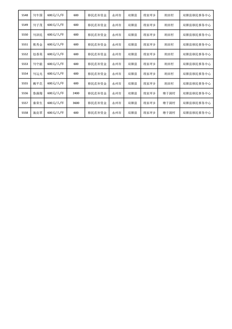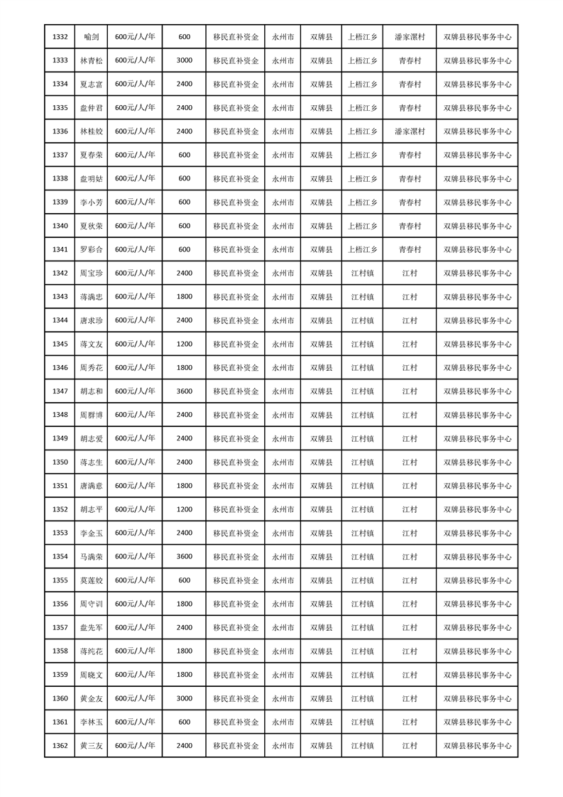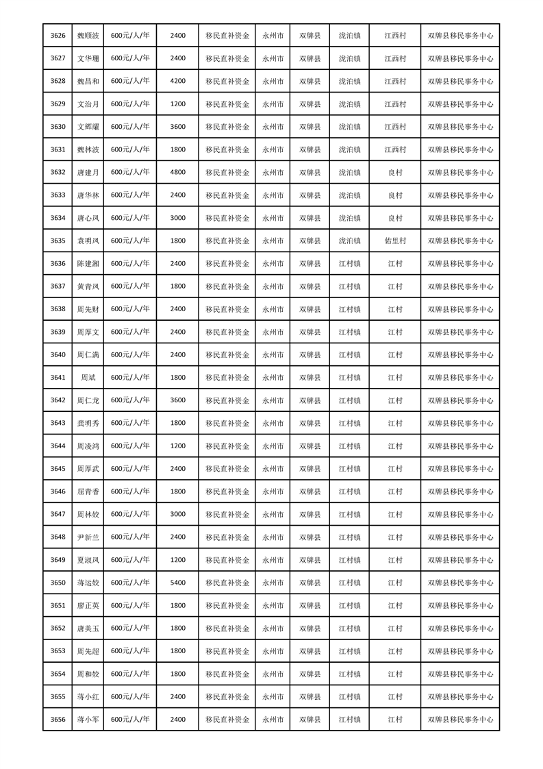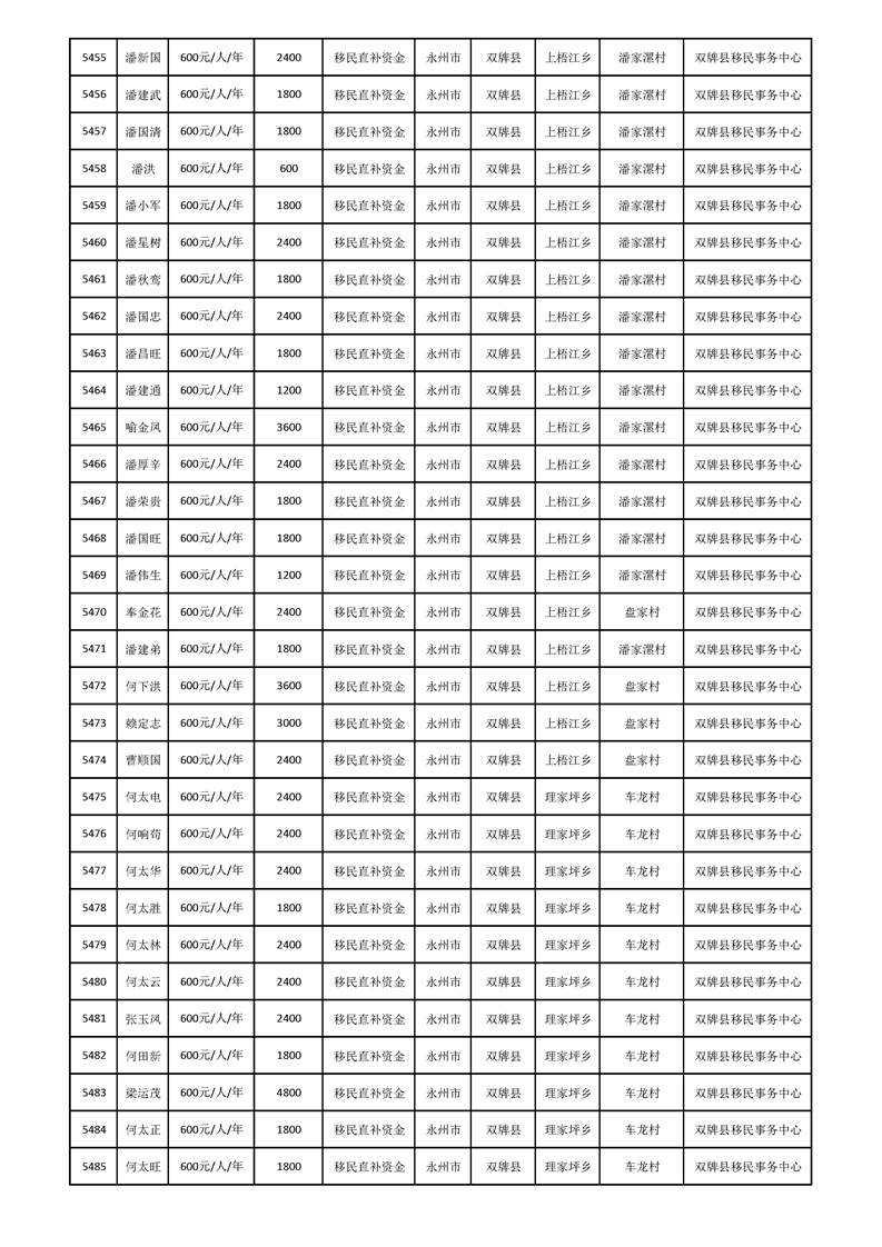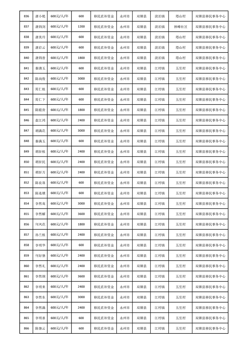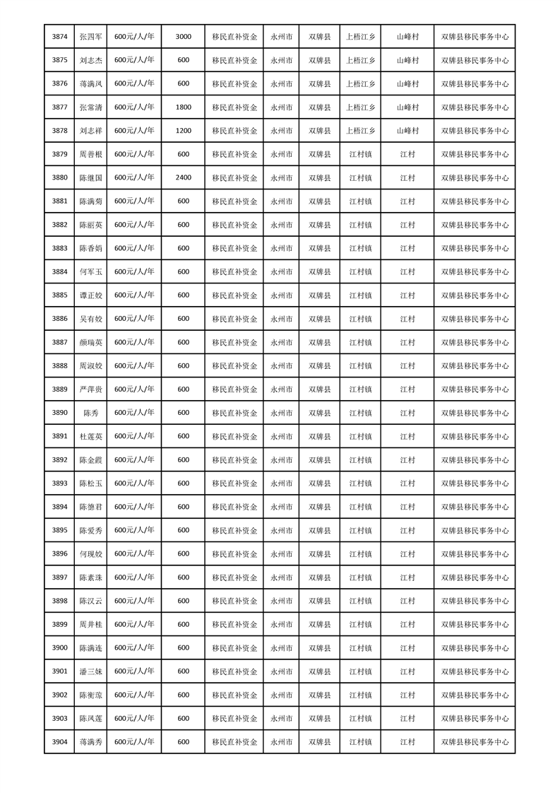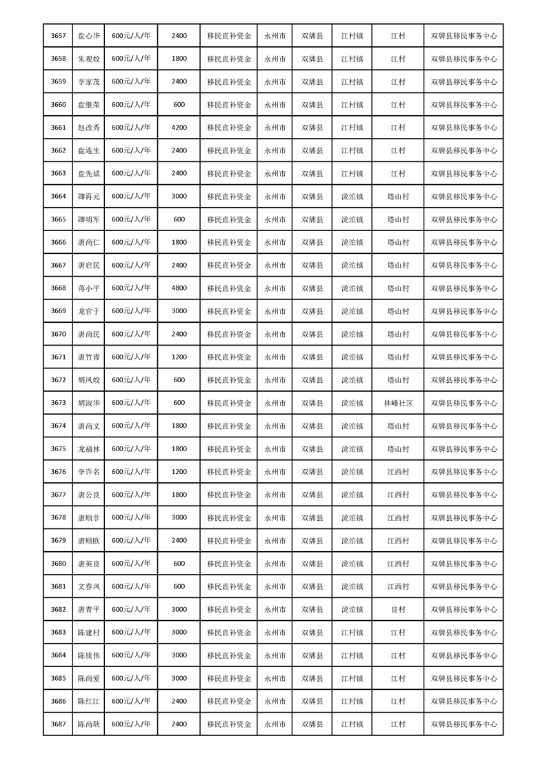 2025年双牌县库区移民后期扶持基金发放名单公示