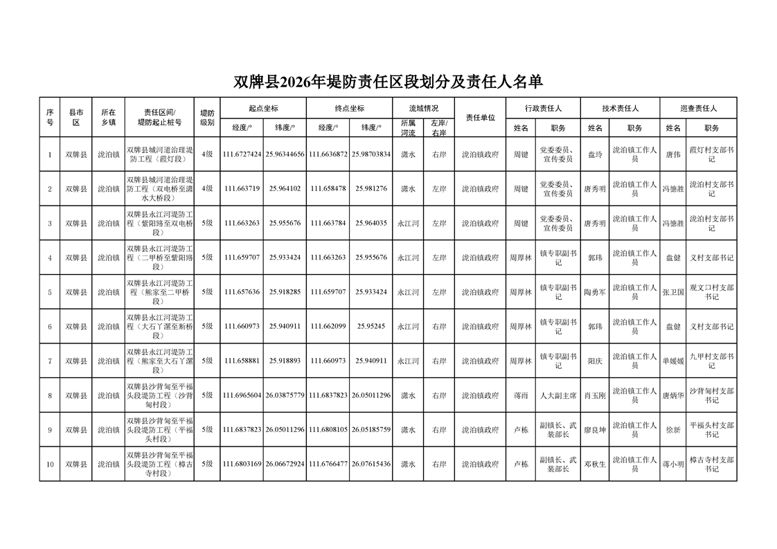 双牌县2026年堤防责任区段划分及责任人公示
