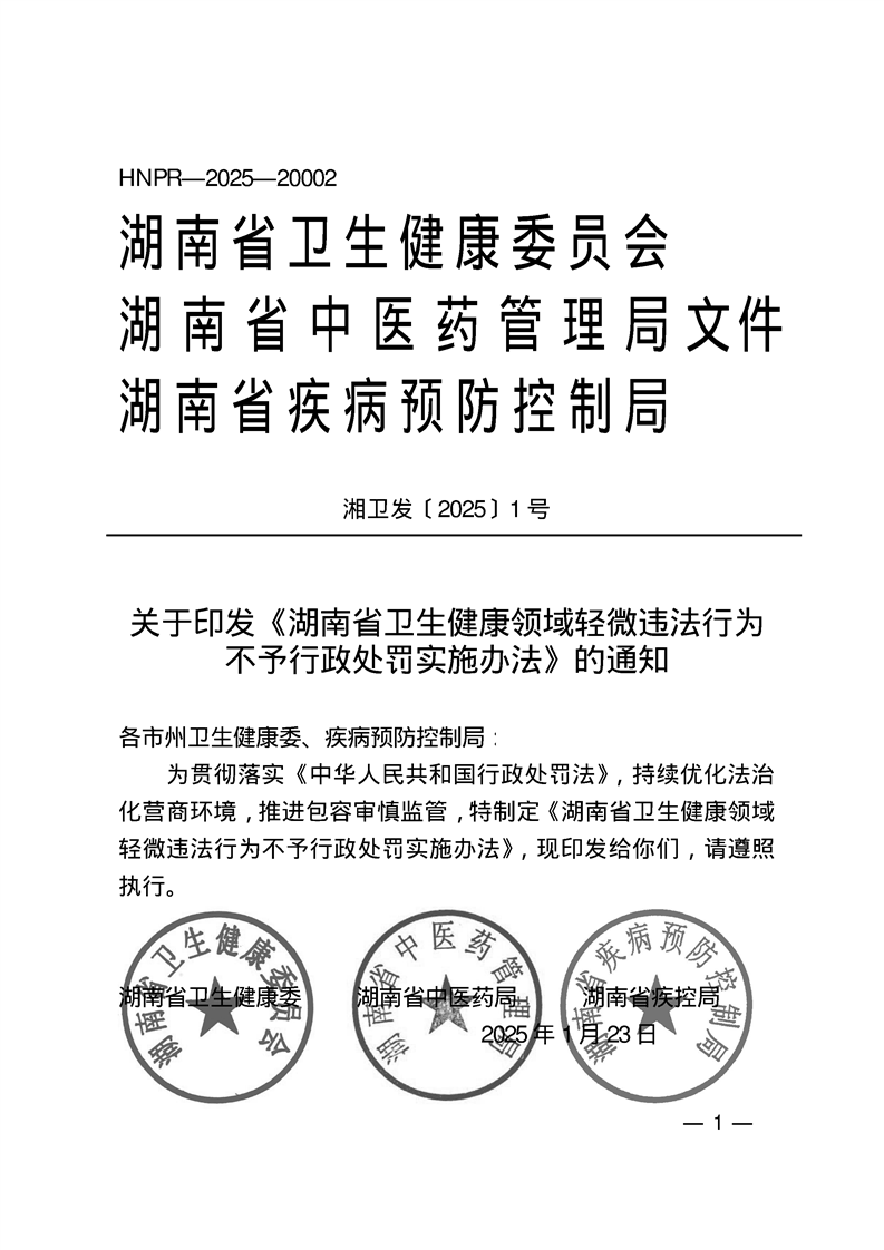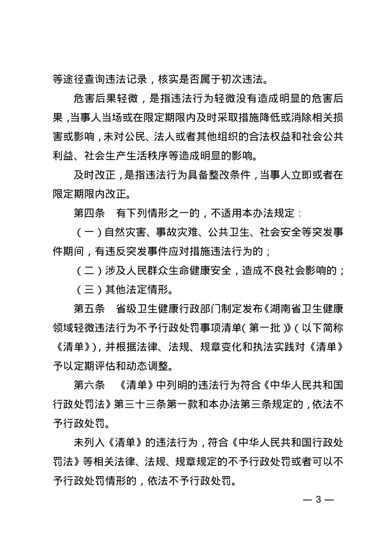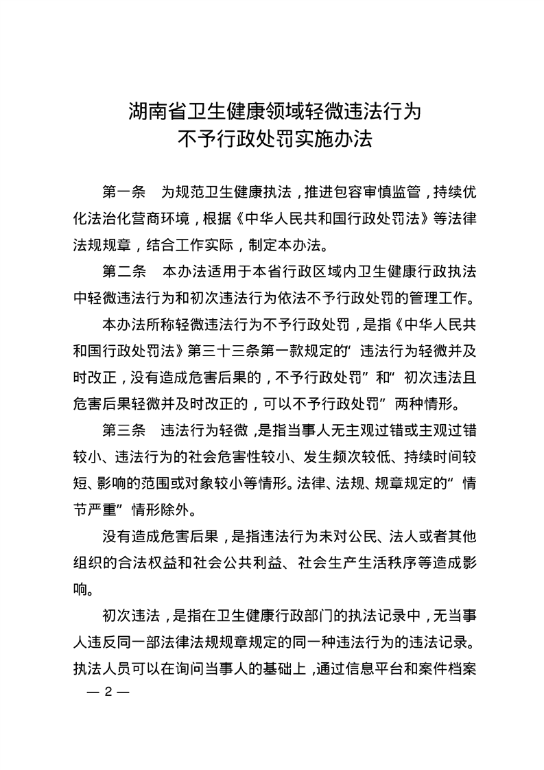 关于转发《湖南省卫生健康领域轻微违法行为不予行政处罚实施办法》的通知