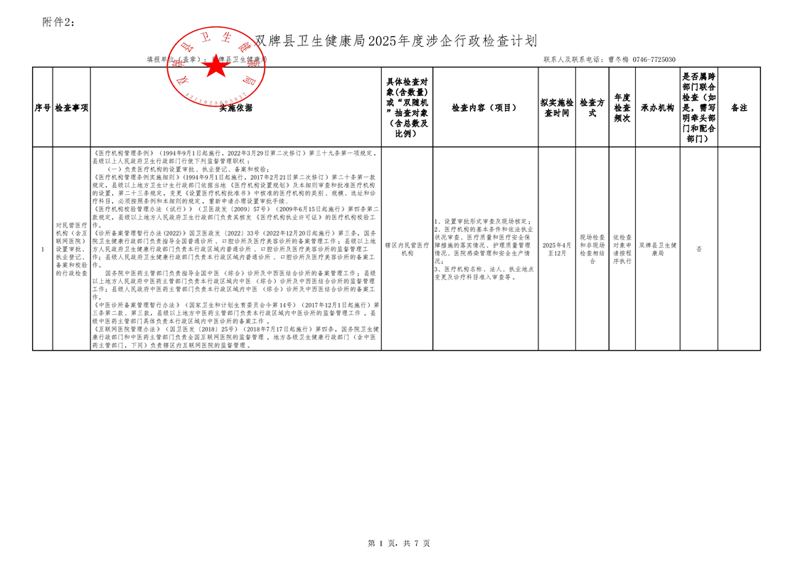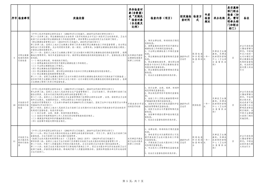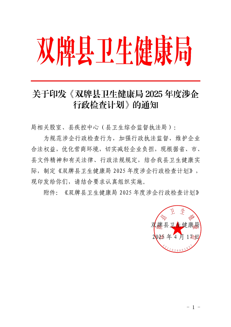 关于印发《双牌县卫生健康局2025年度涉企行政检查计划》的通知