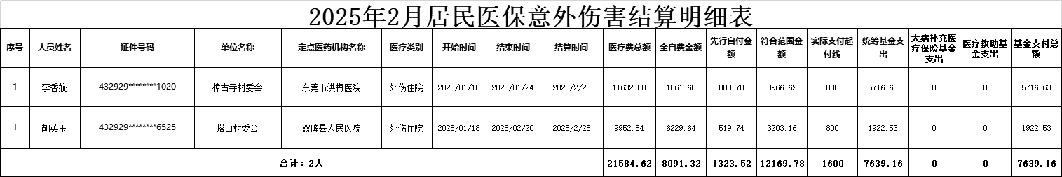 双牌县医疗保障局2025年2月份意外伤害结算情况公示 - 文号: