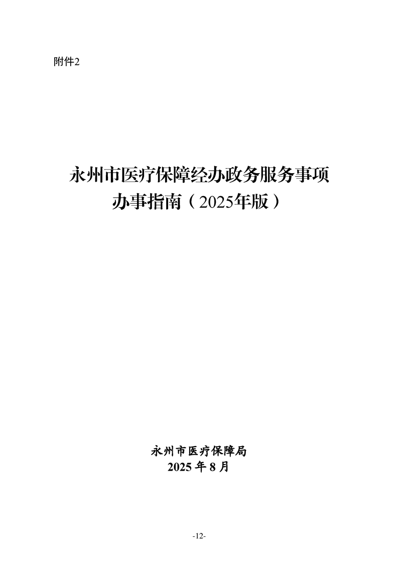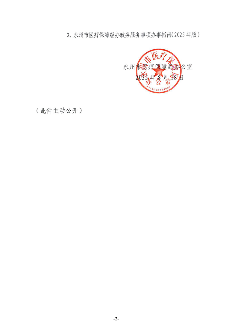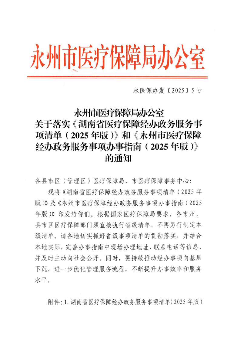 永州市医疗保障局办公室关于落实《湖南省医疗保障经办政务服务事项清单(2025年版)》和《永州市医疗保障经办政务服务事项办事指南(2025年版)》的通知