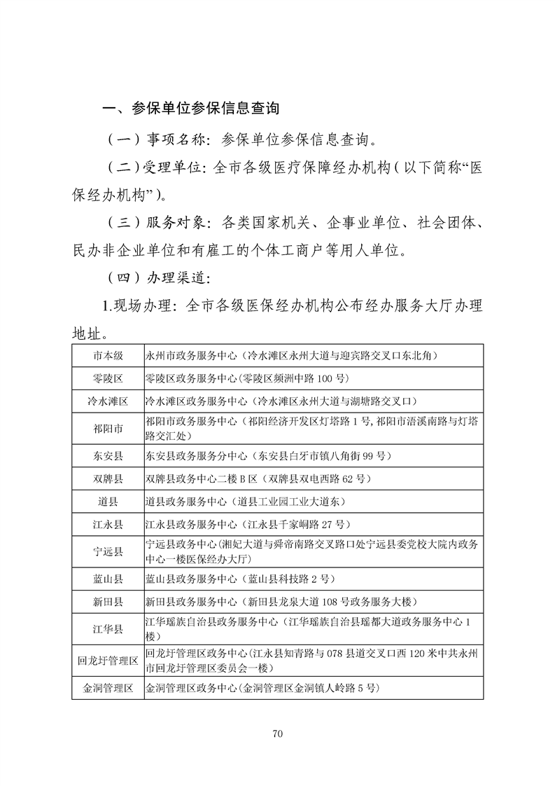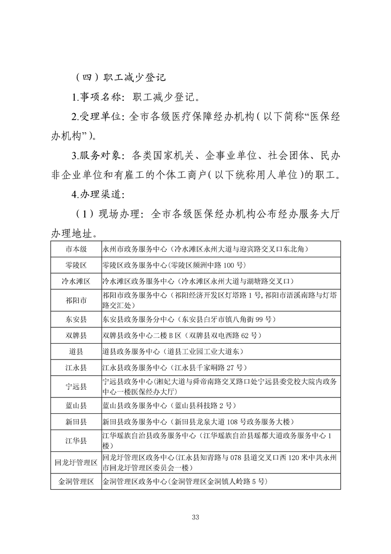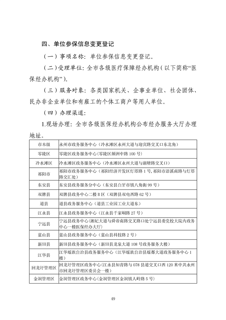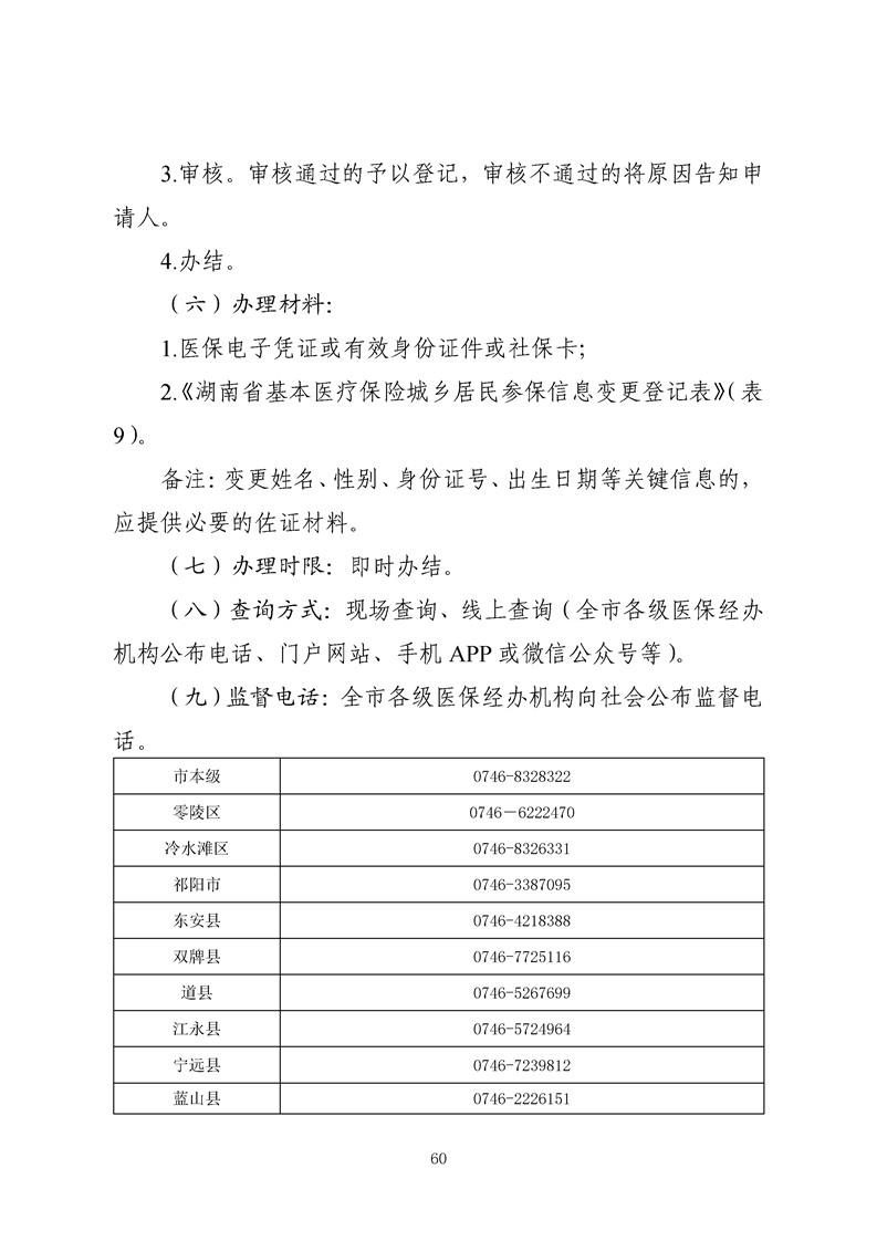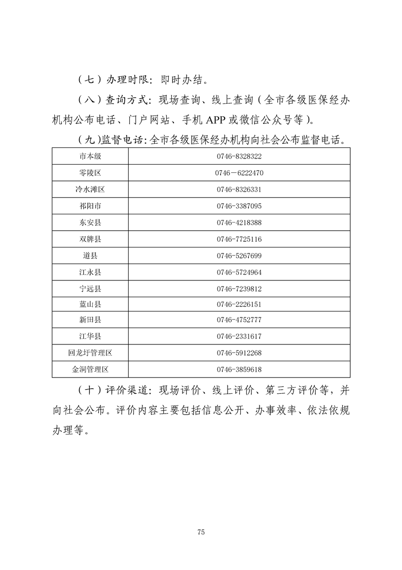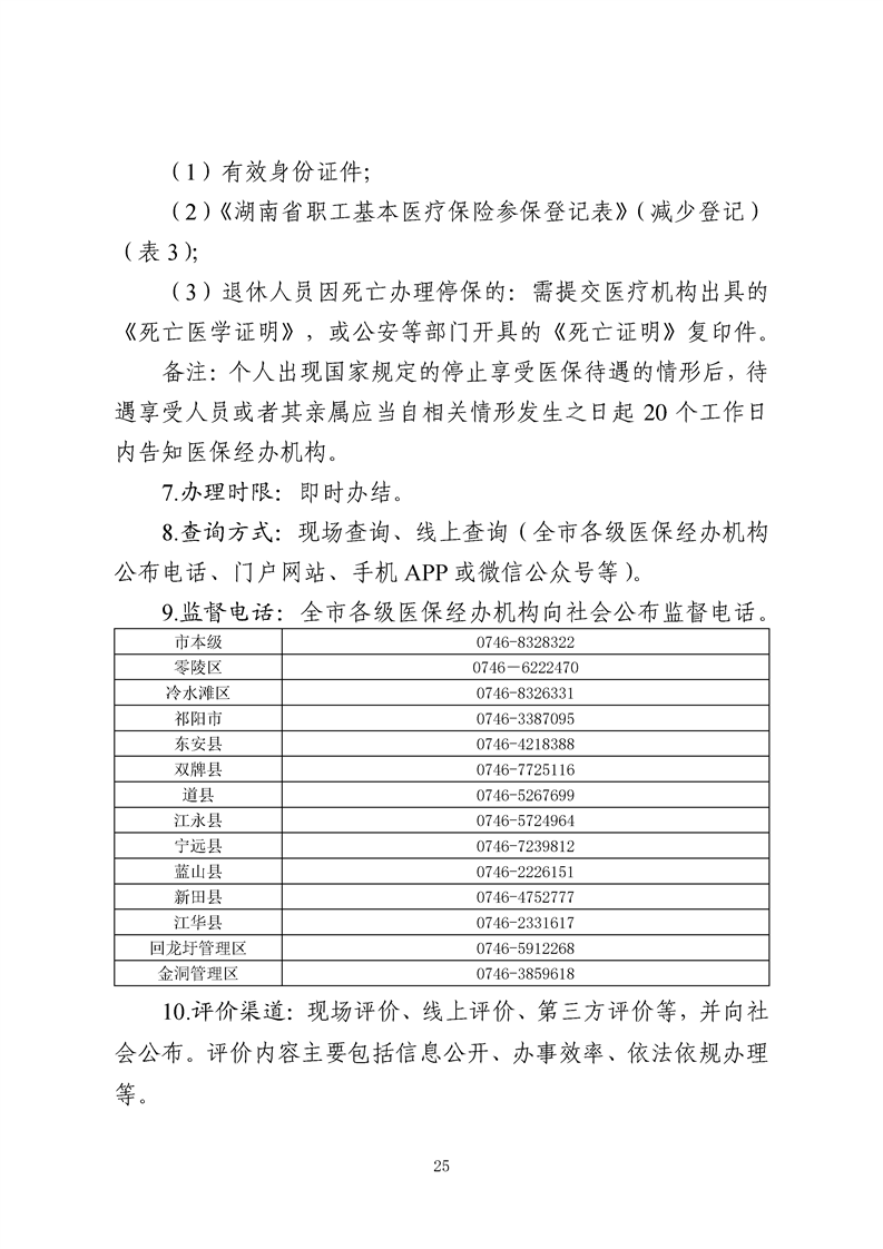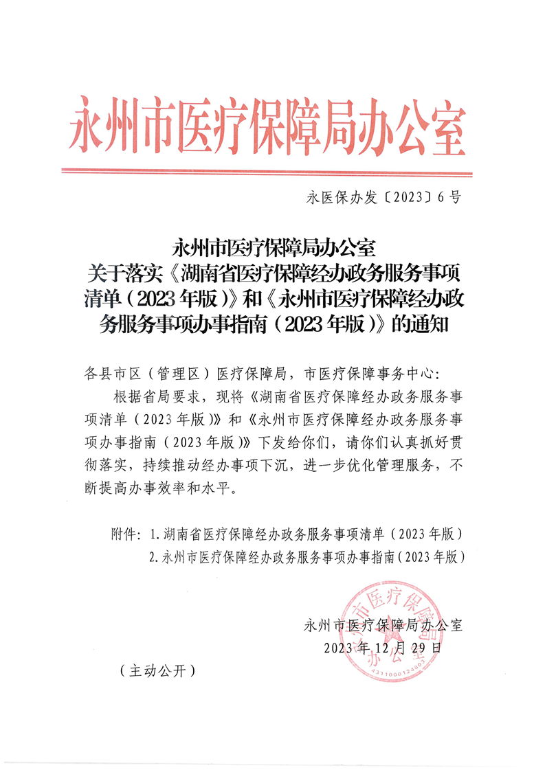 永州市医疗保障局办公室关于落实医疗保障经办政务服务事项清单和办事指南的通知