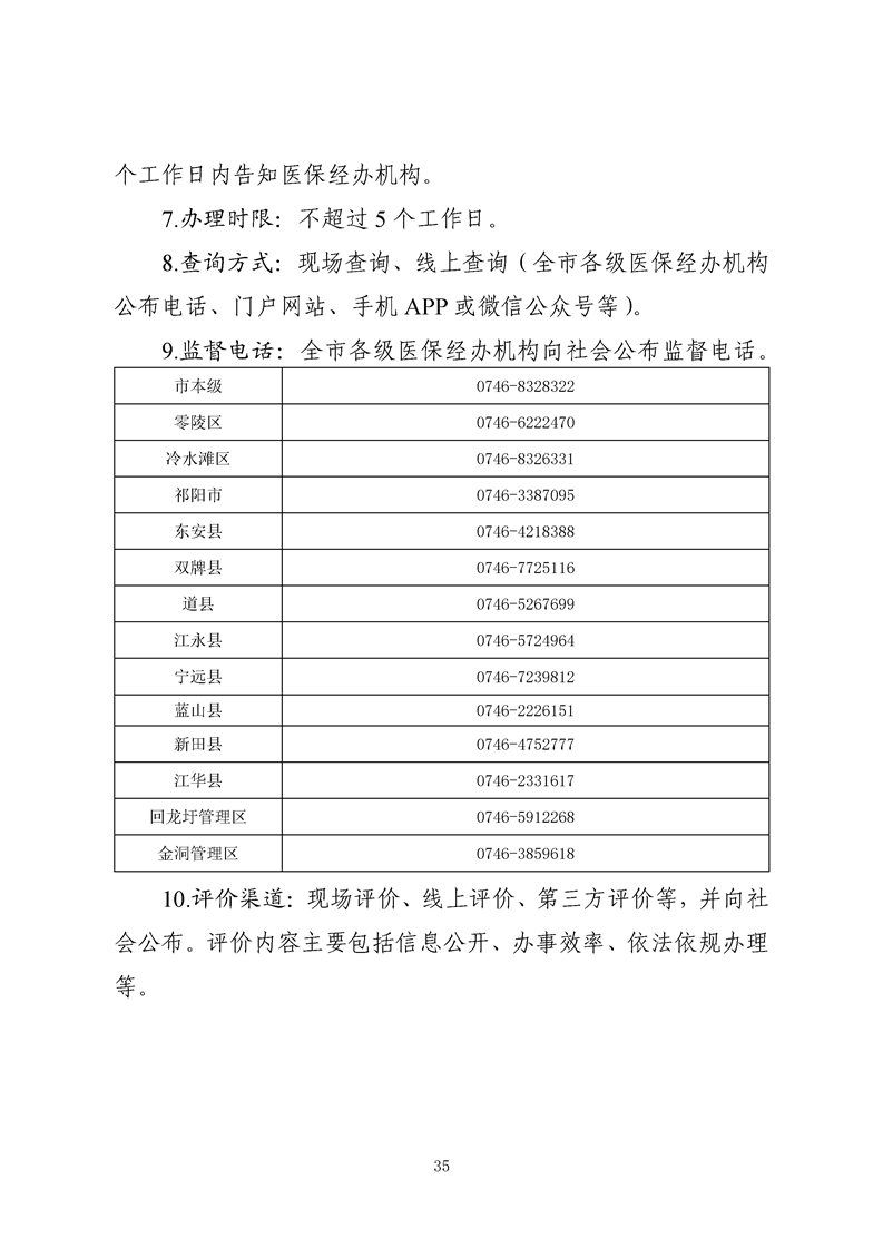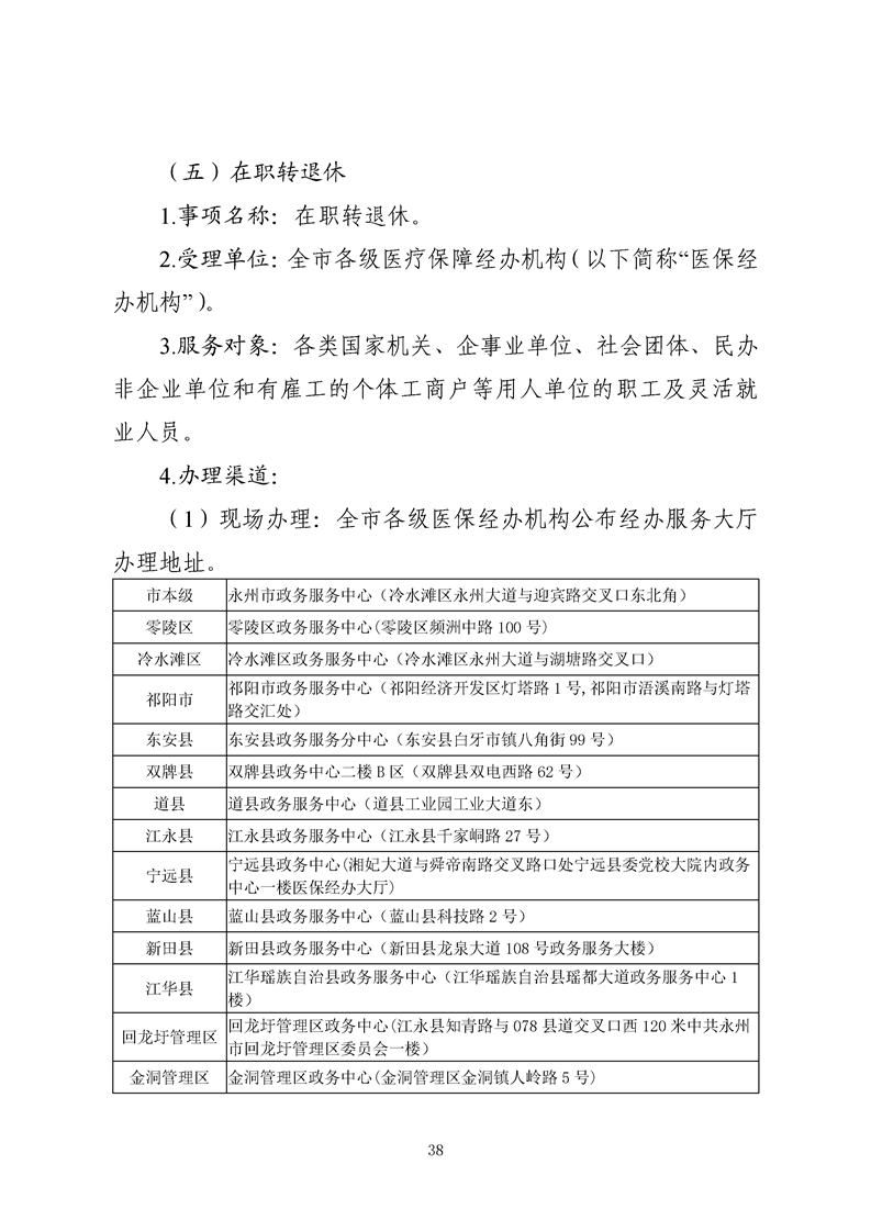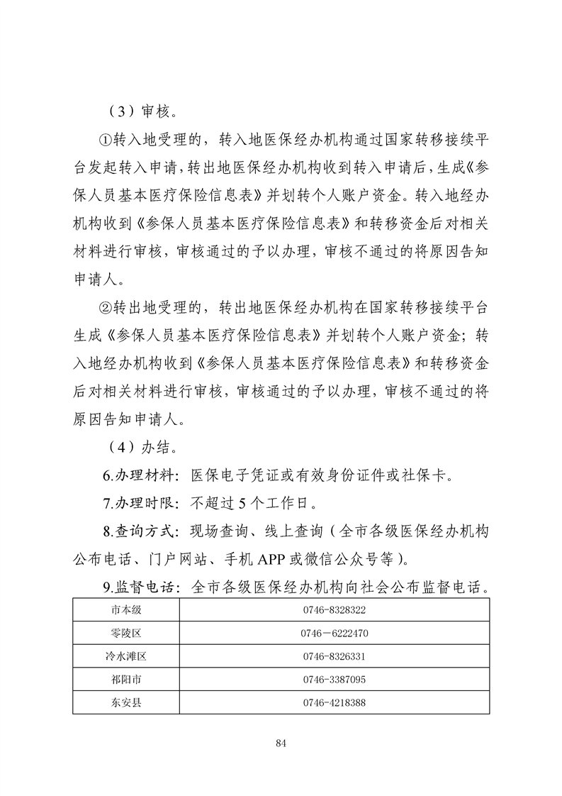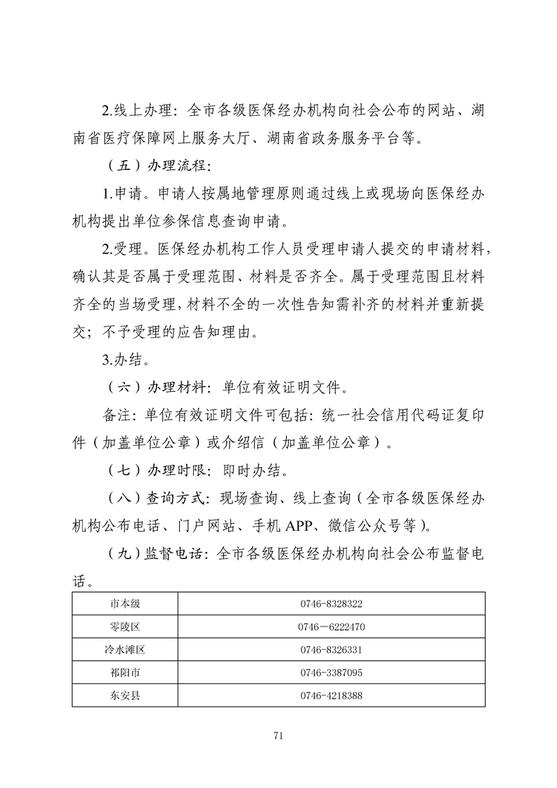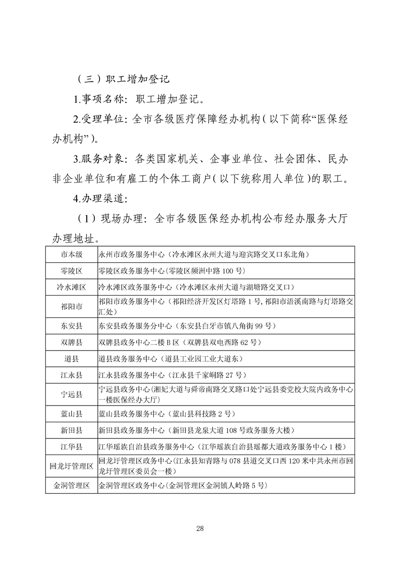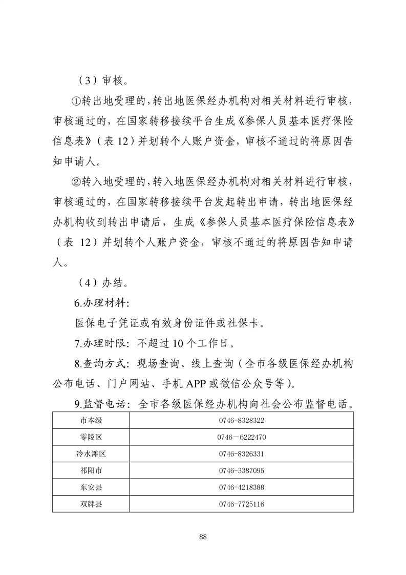 永州市医疗保障局办公室关于落实医疗保障经办政务服务事项清单和办事指南的通知