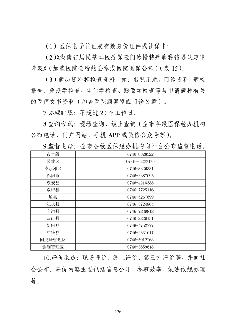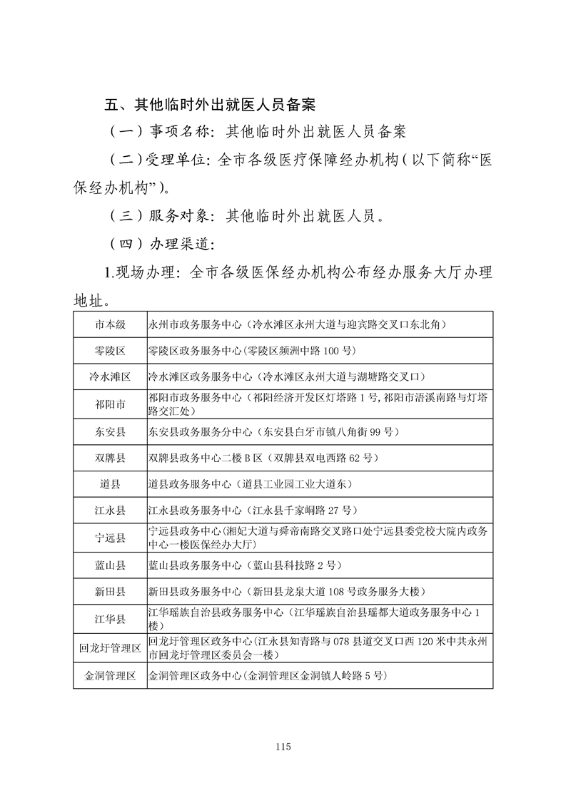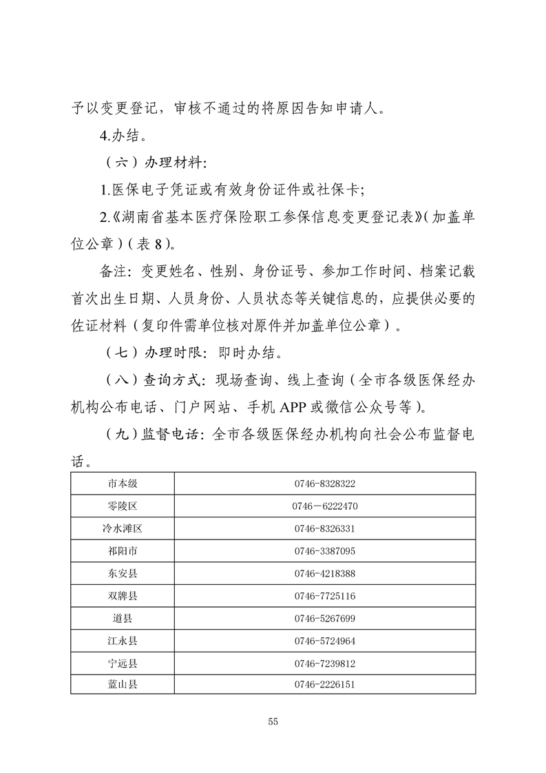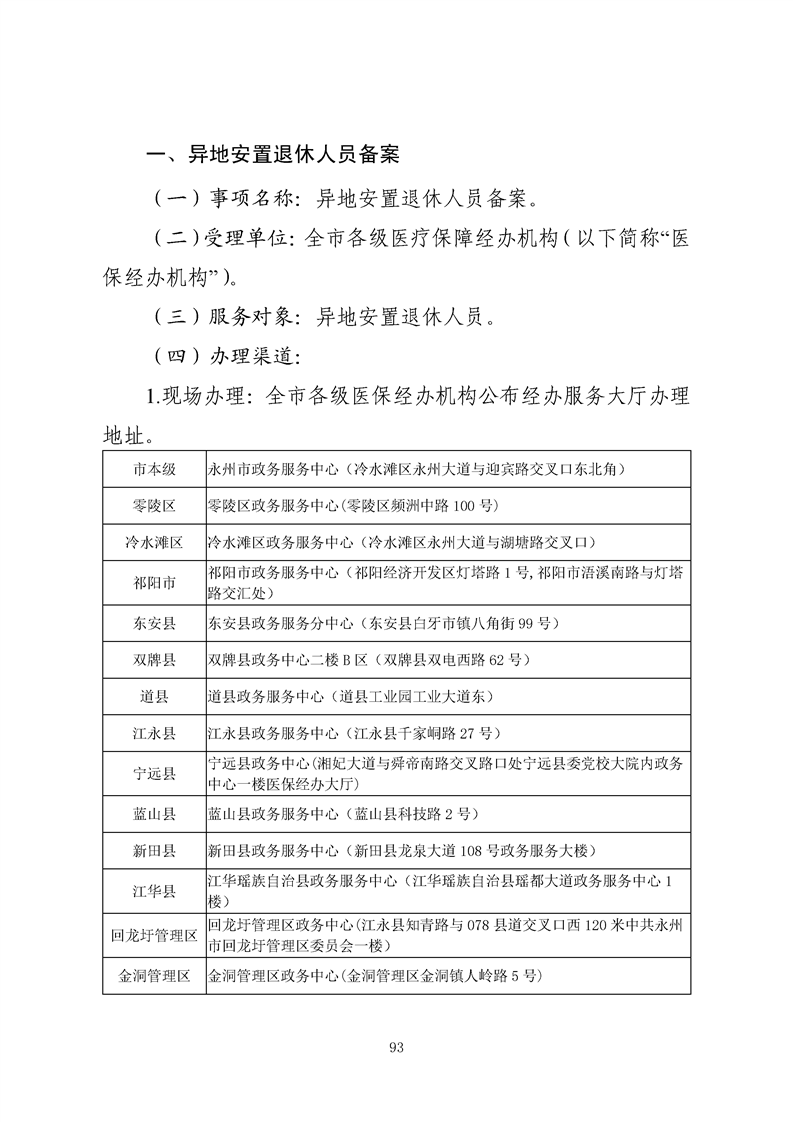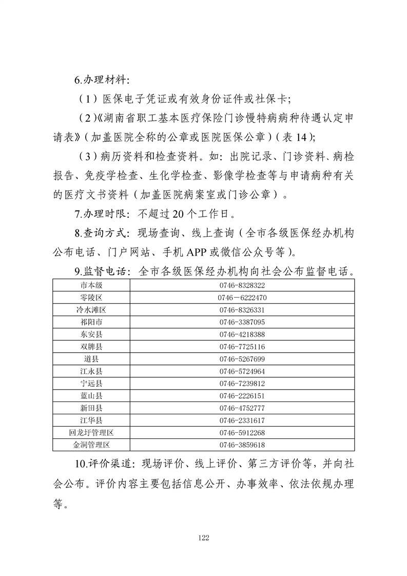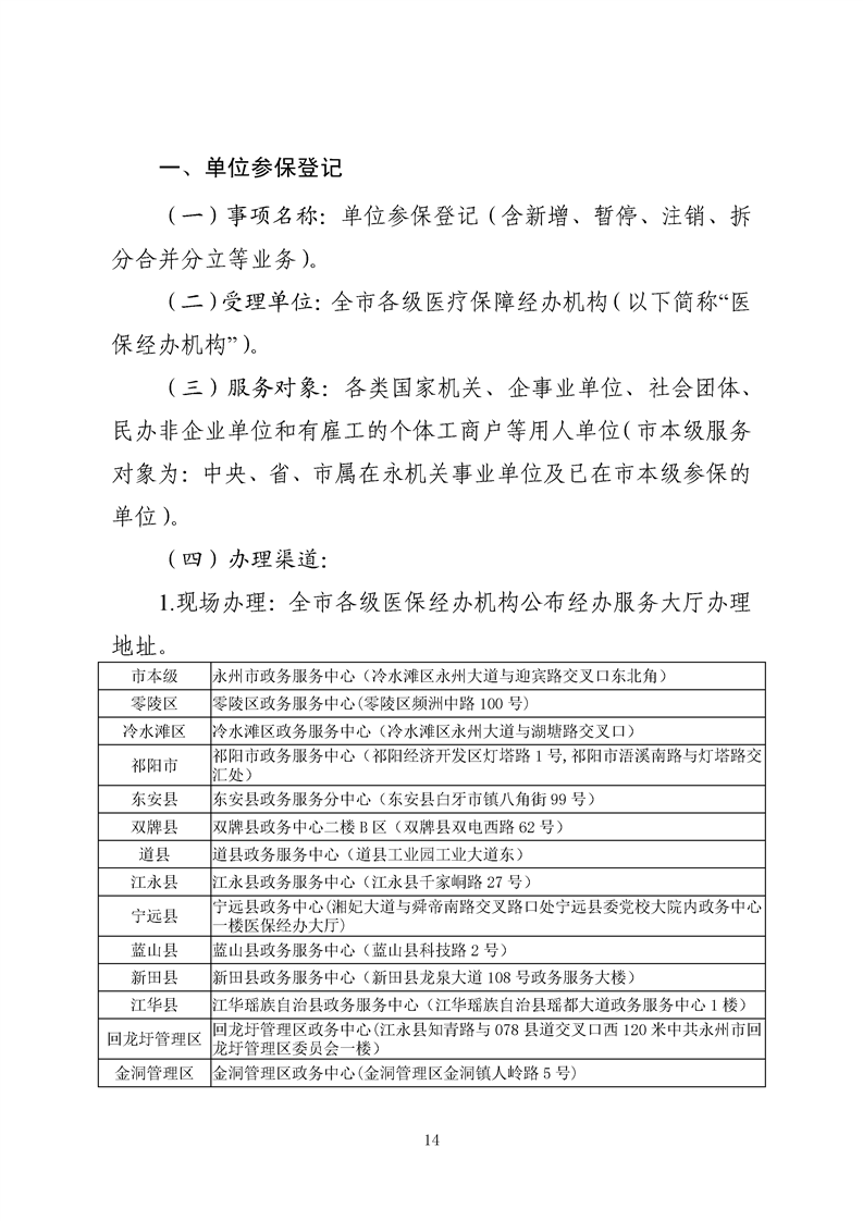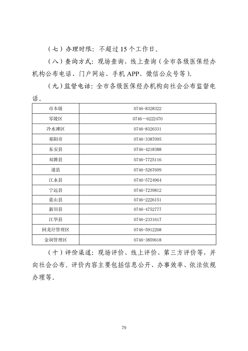 永州市医疗保障局办公室关于落实医疗保障经办政务服务事项清单和办事指南的通知