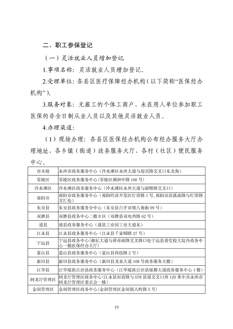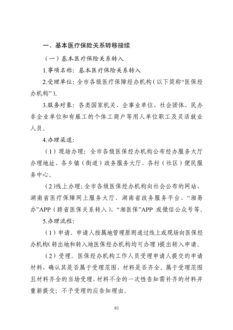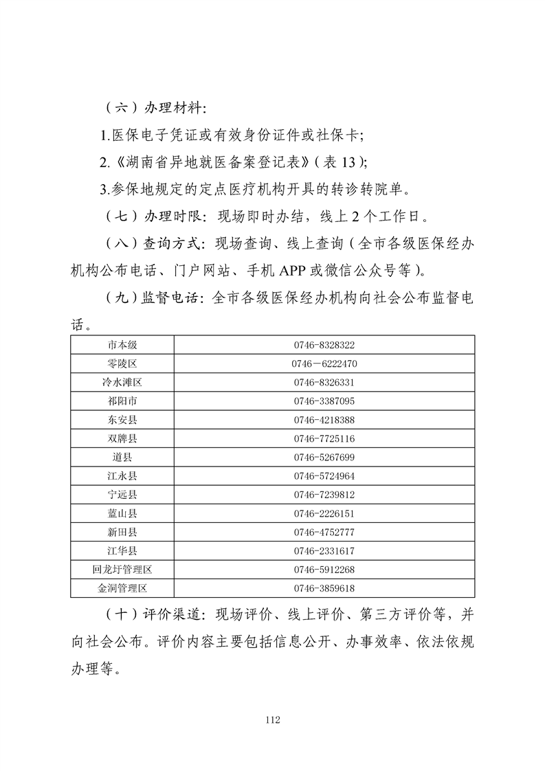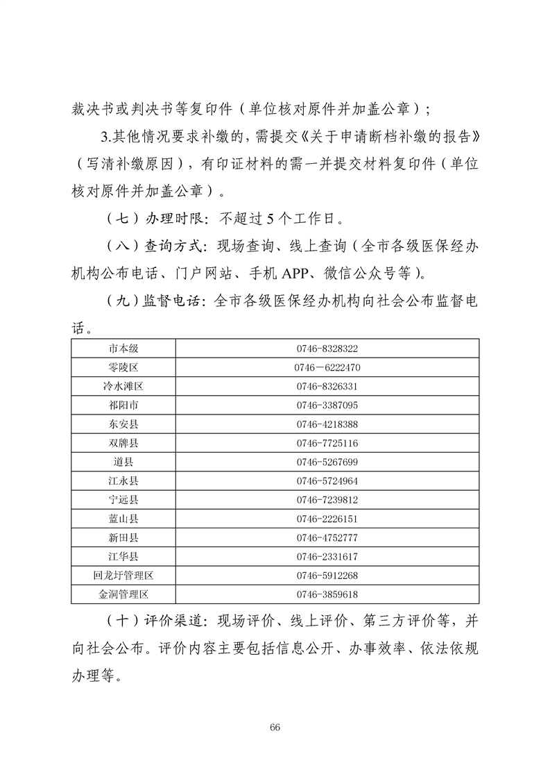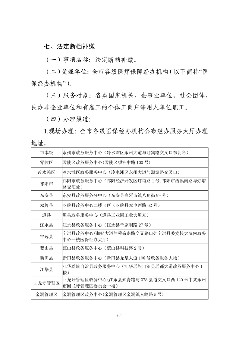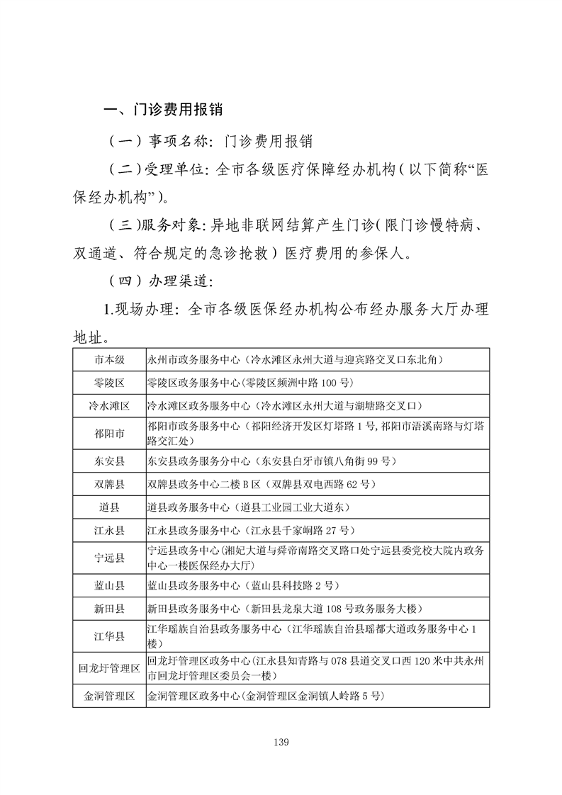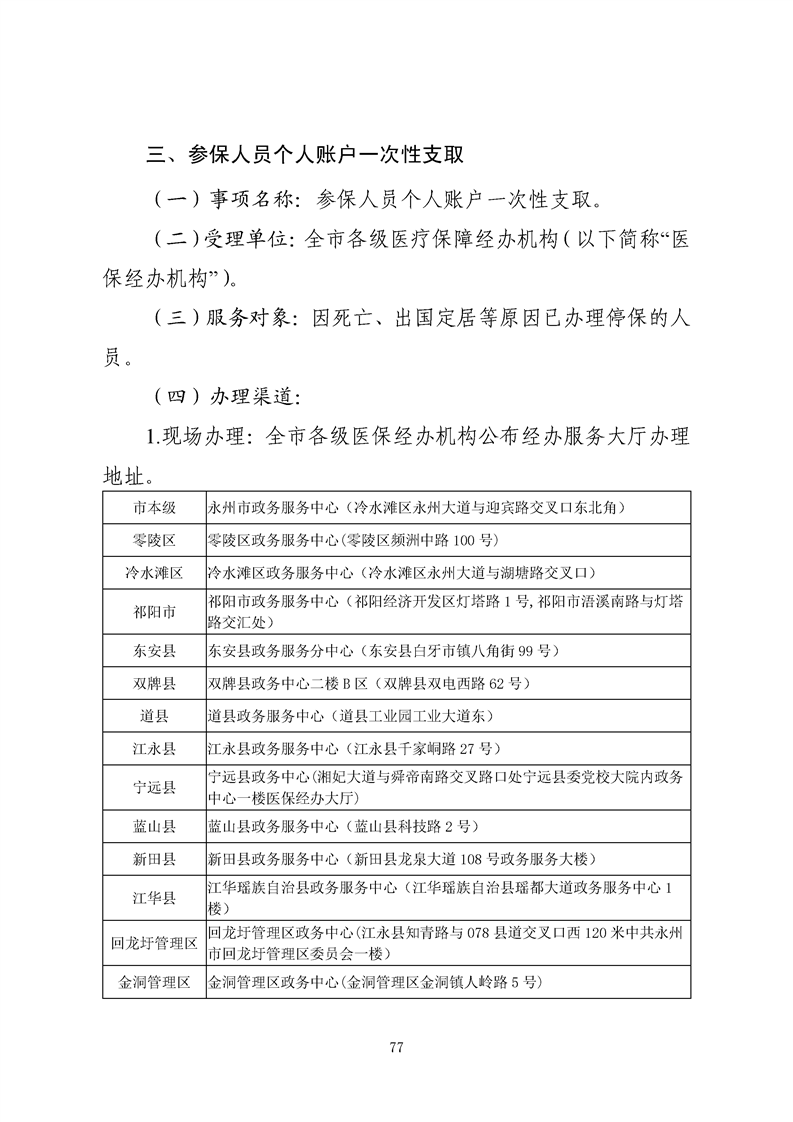 永州市医疗保障局办公室关于落实医疗保障经办政务服务事项清单和办事指南的通知
