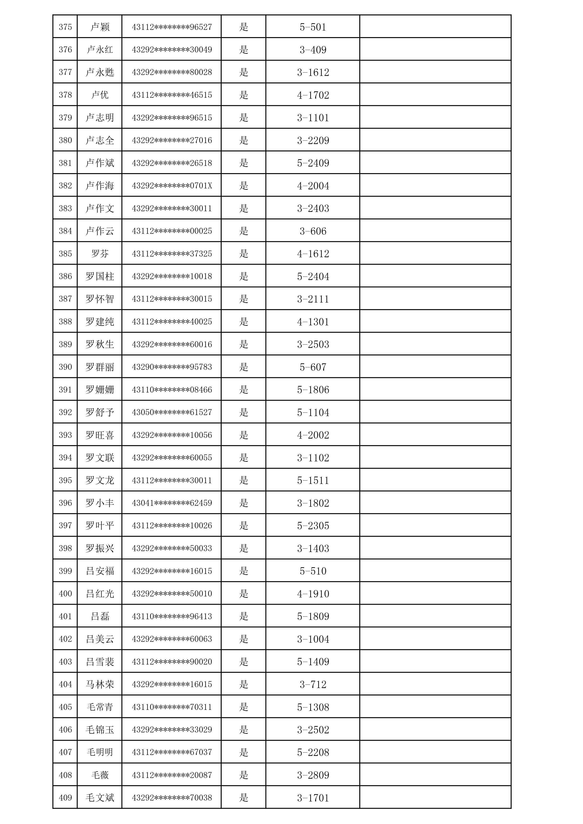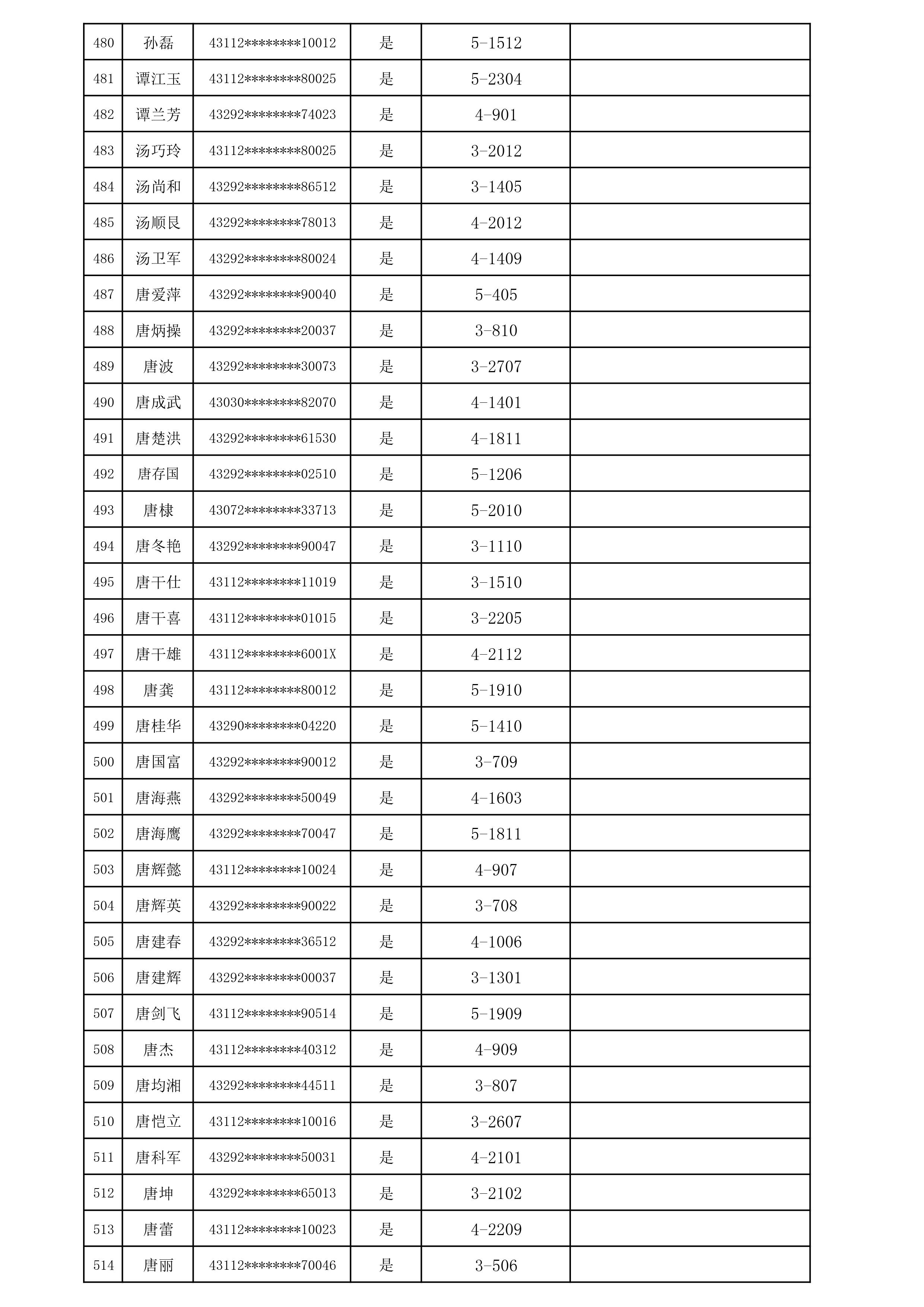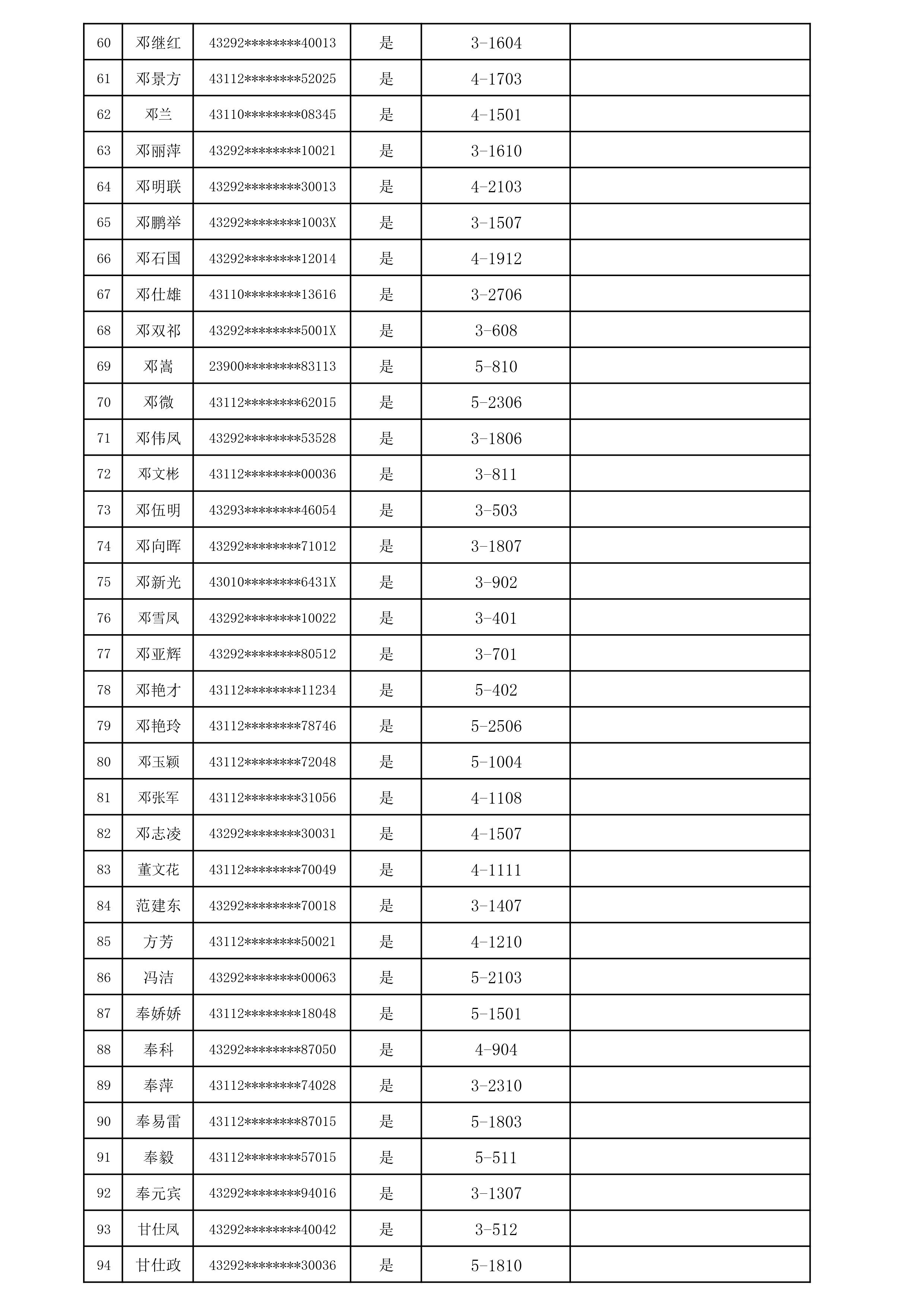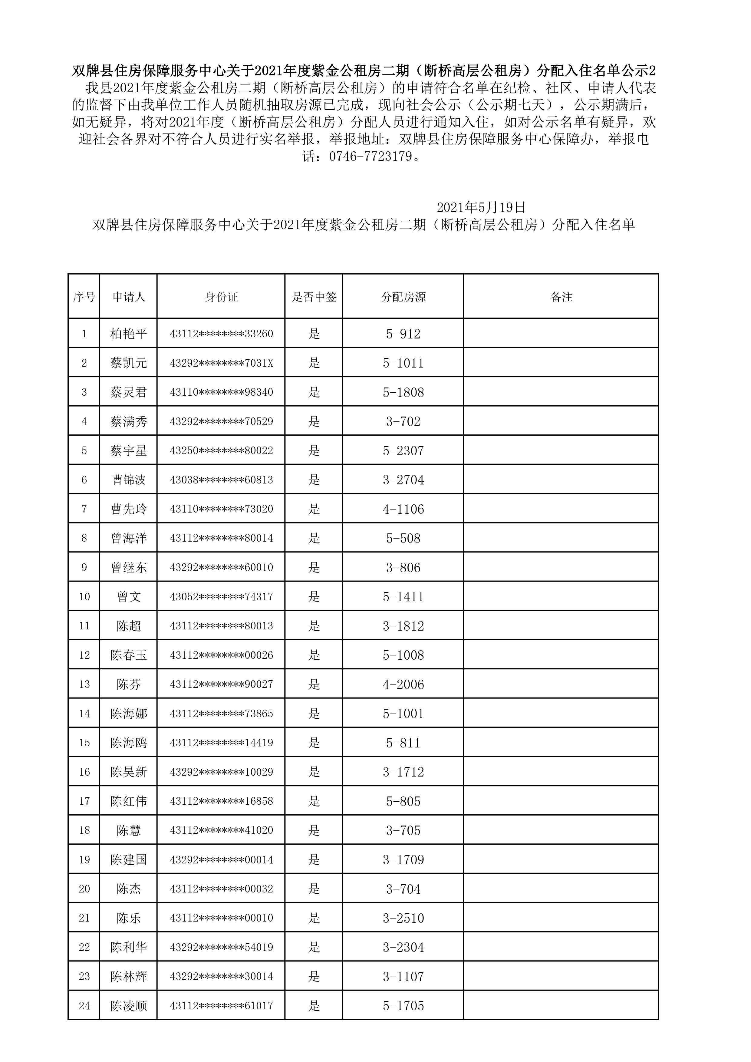双牌县住房保障服务中心关于2021年度紫金公租房第二期(断桥高层公租房)分配入住名单公示2