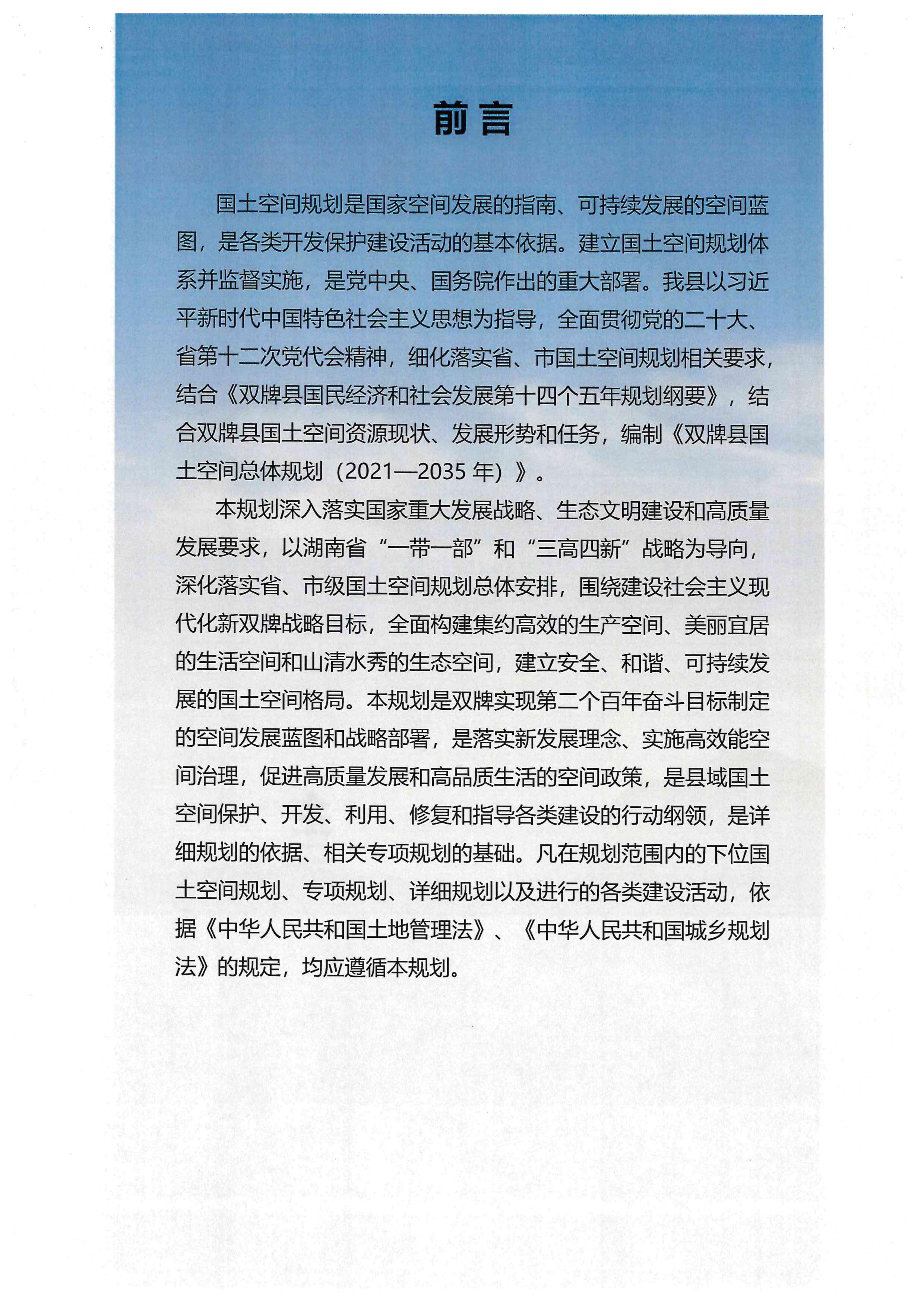 按照国家、省、市工作部署,为实现第二个百年奋斗目标,双牌县人民政府组织编制了《双牌县国土空间总体规划(2021-2035年)》,前瞻制定了空间发展蓝图和战略部署。