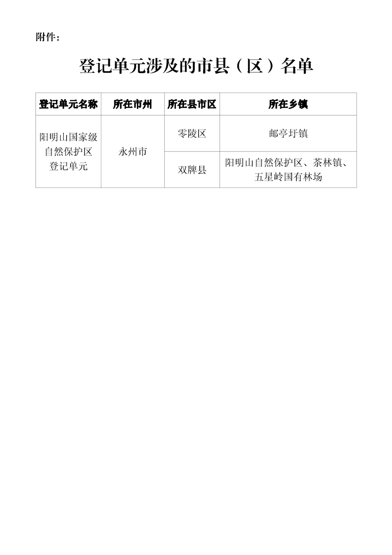 湖南省自然资源厅 关于开展阳明山国家级自然保护区自然资源确权登记通知