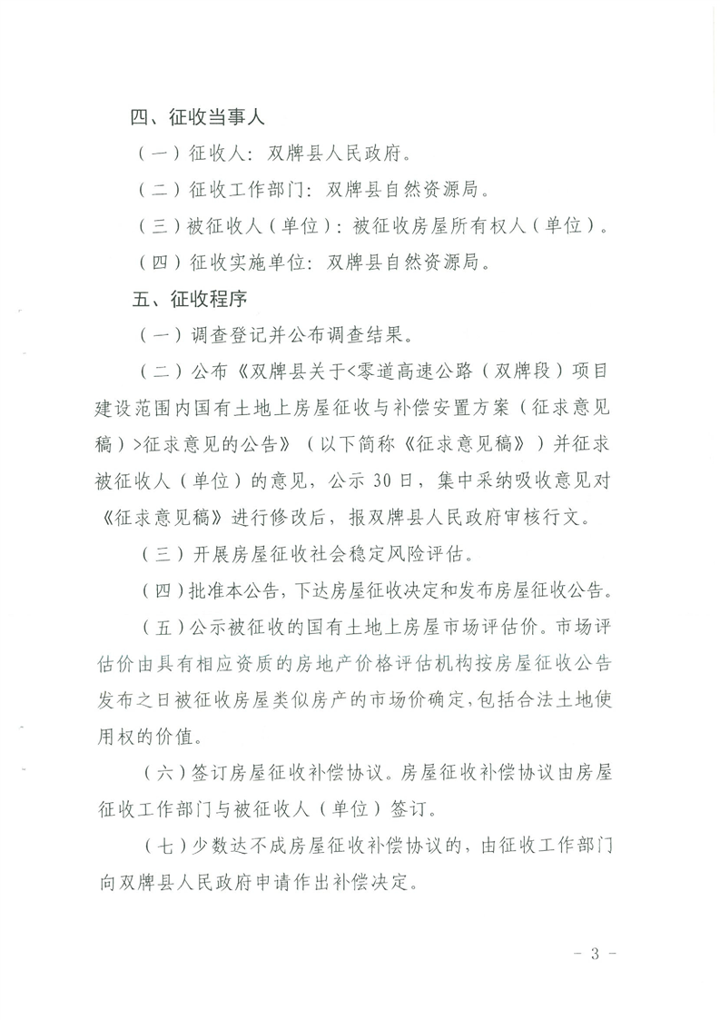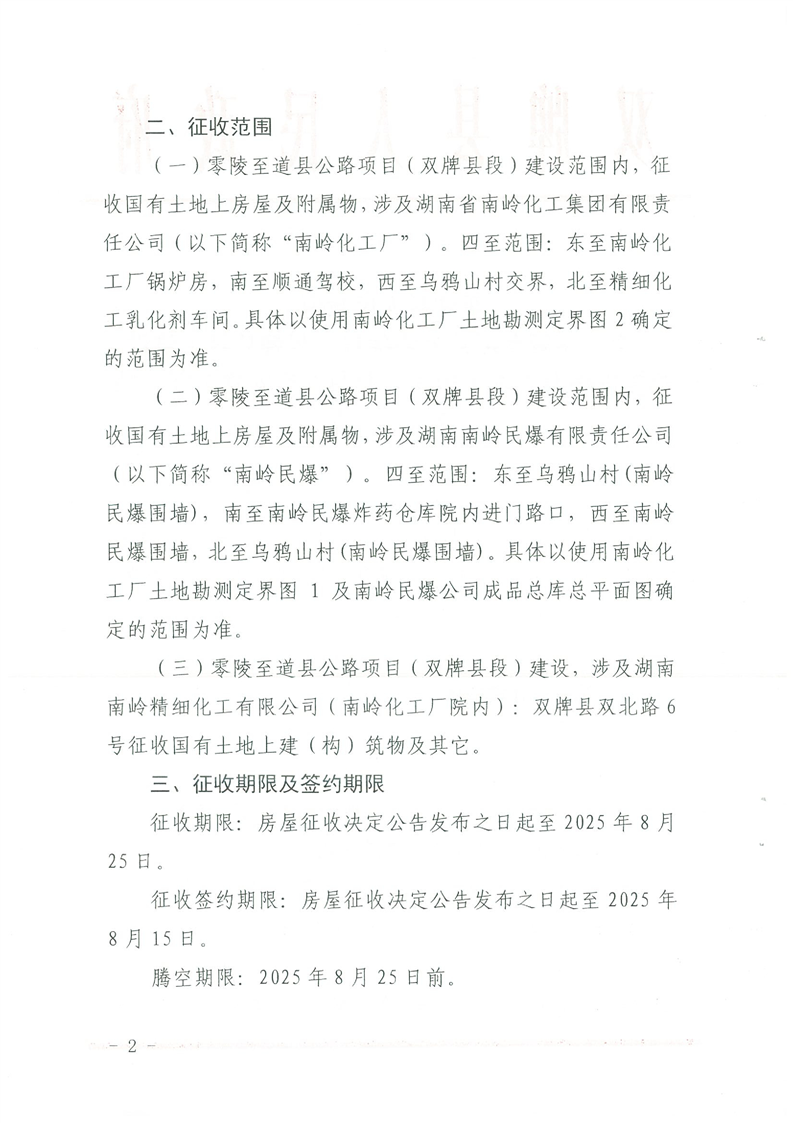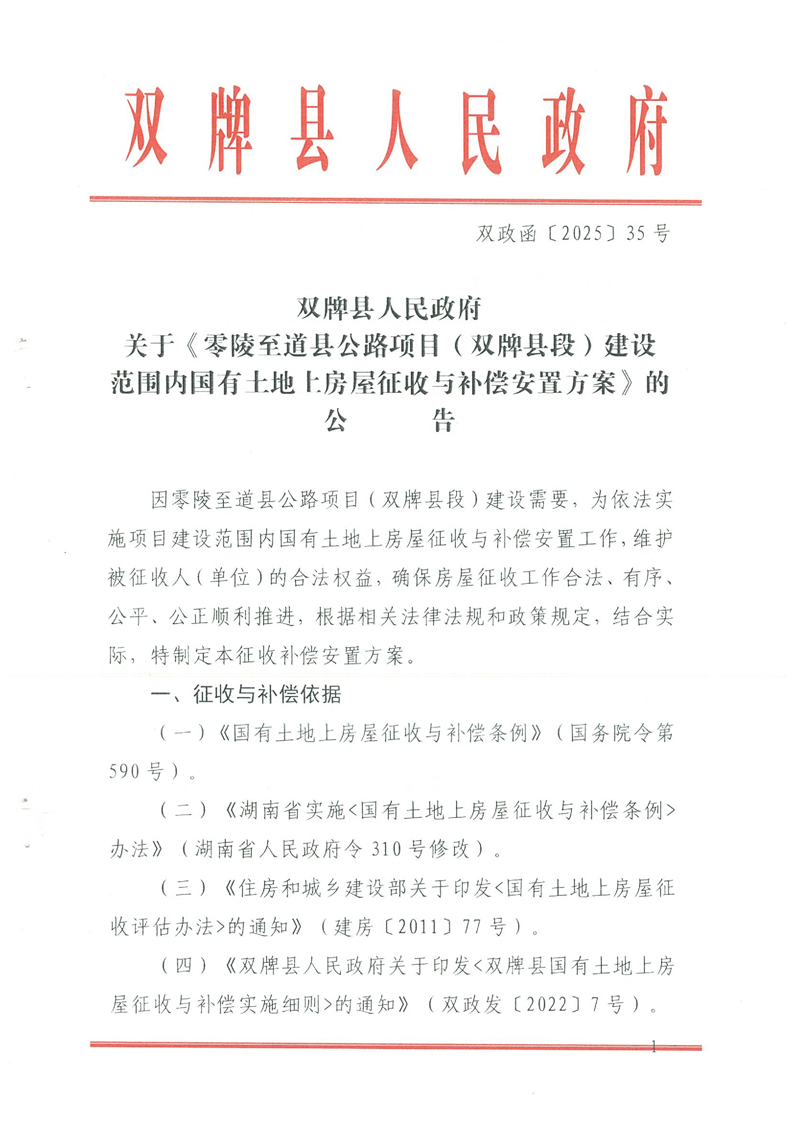 关于《零陵至道县公路项目(双牌县段)建设范围内国有土地房屋征收与补偿安置方案》的公告