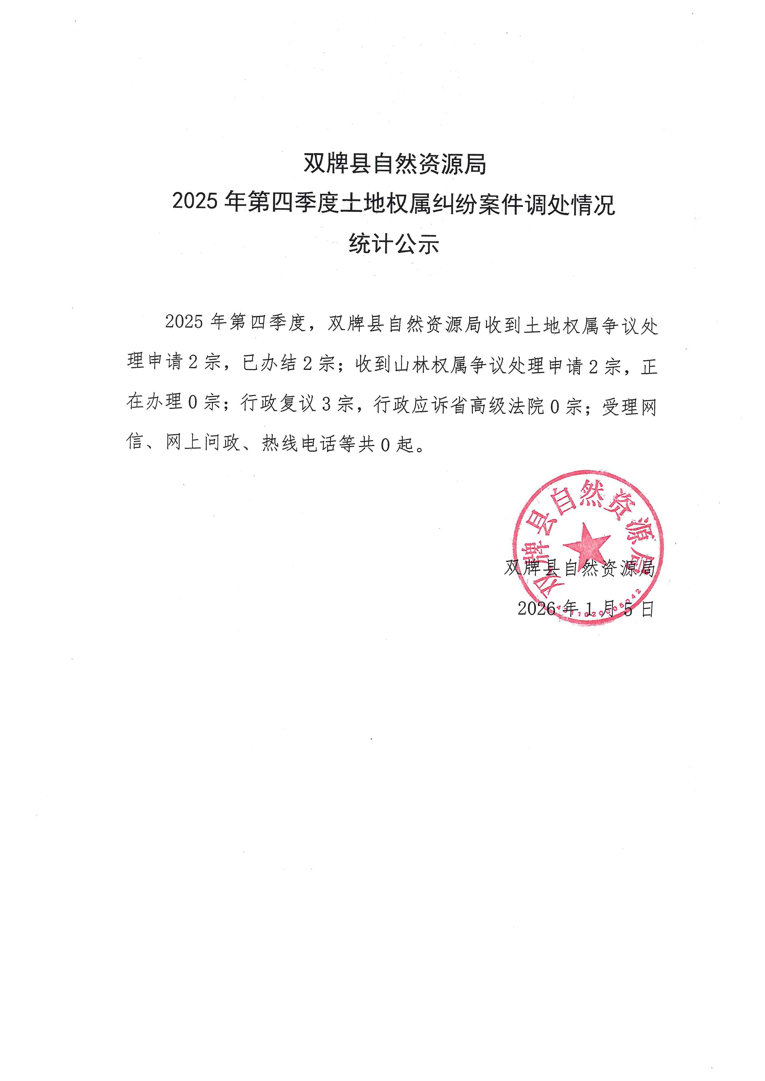 2025年第四季度土地权属纠纷案件调处情况统计公示