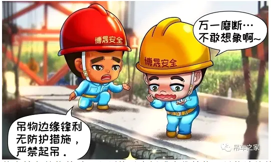 吊装有棱角的物件时,必须垫以木板或麻袋等物,吊物边缘锋利无防护措施严禁起吊。