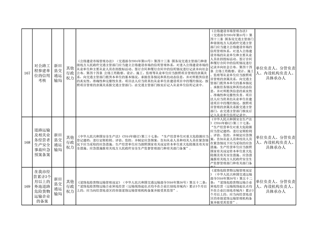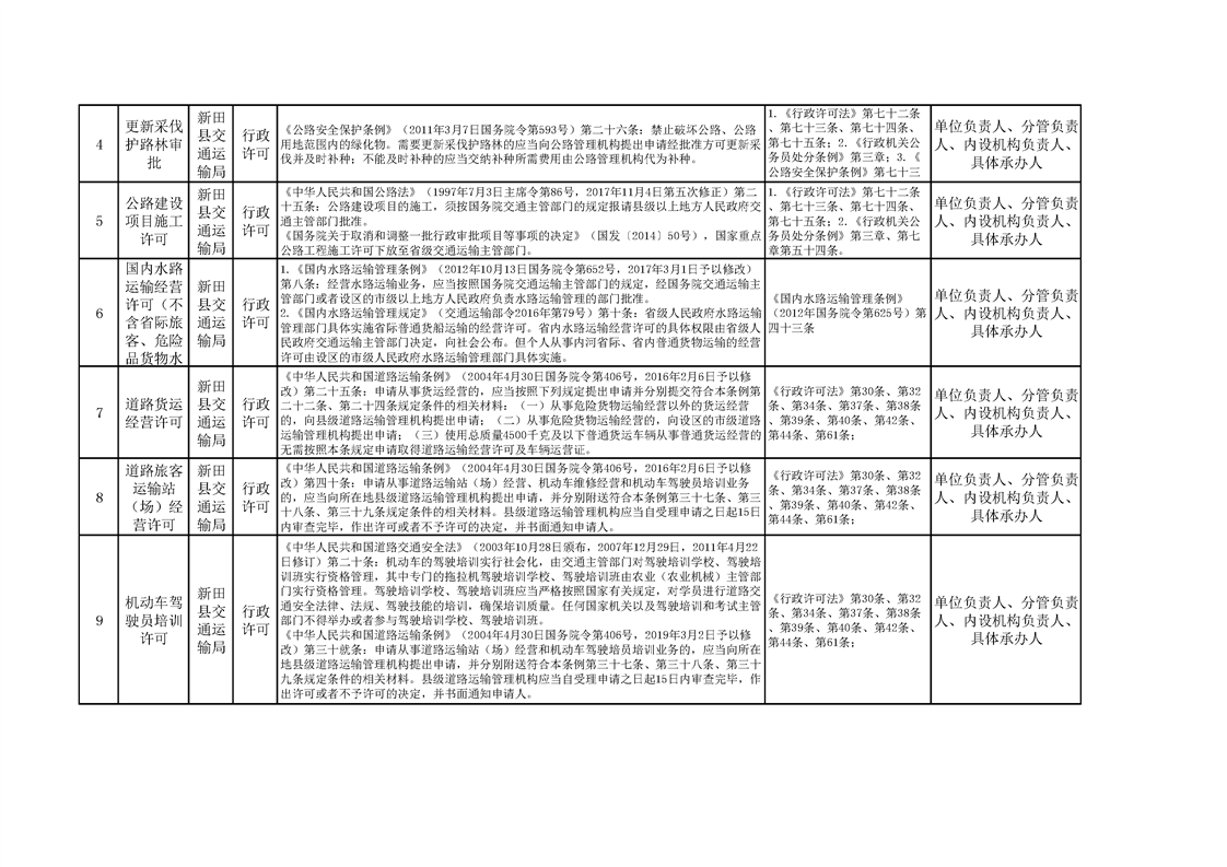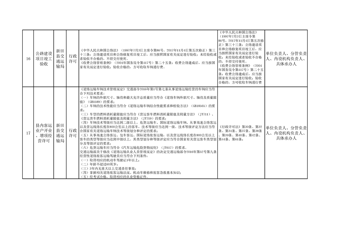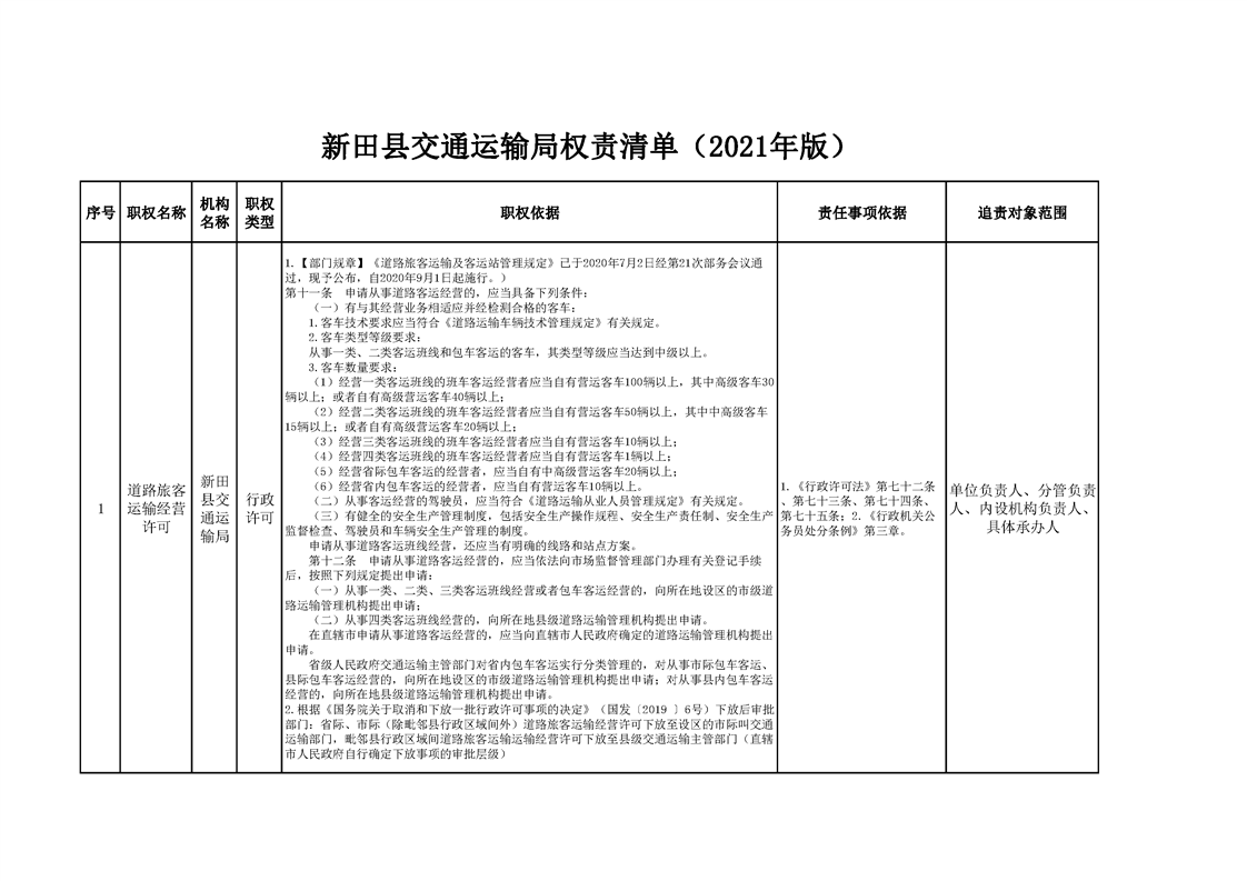 新田县交通运输局权责清单
