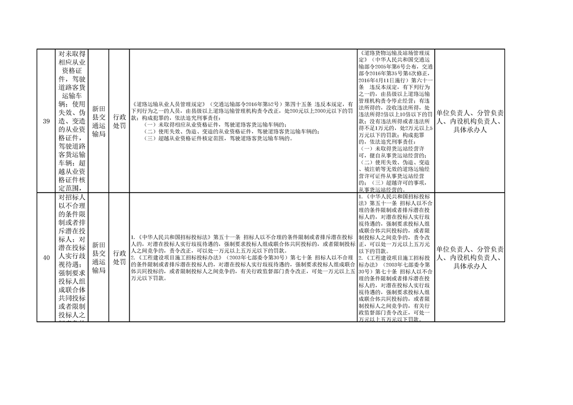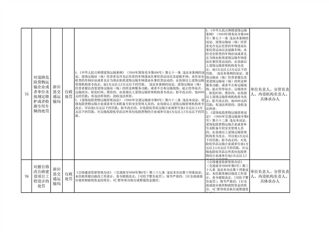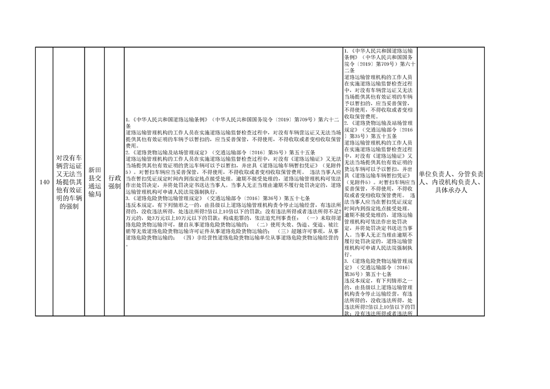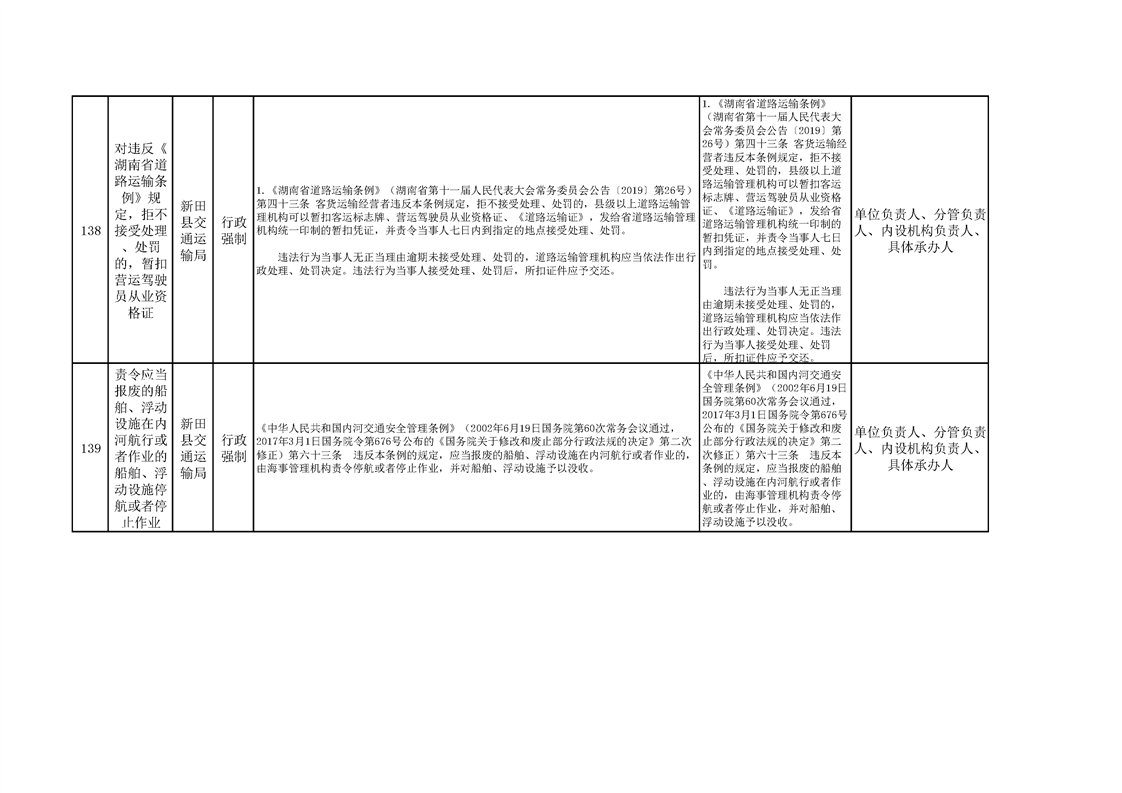 新田县交通运输局权责清单