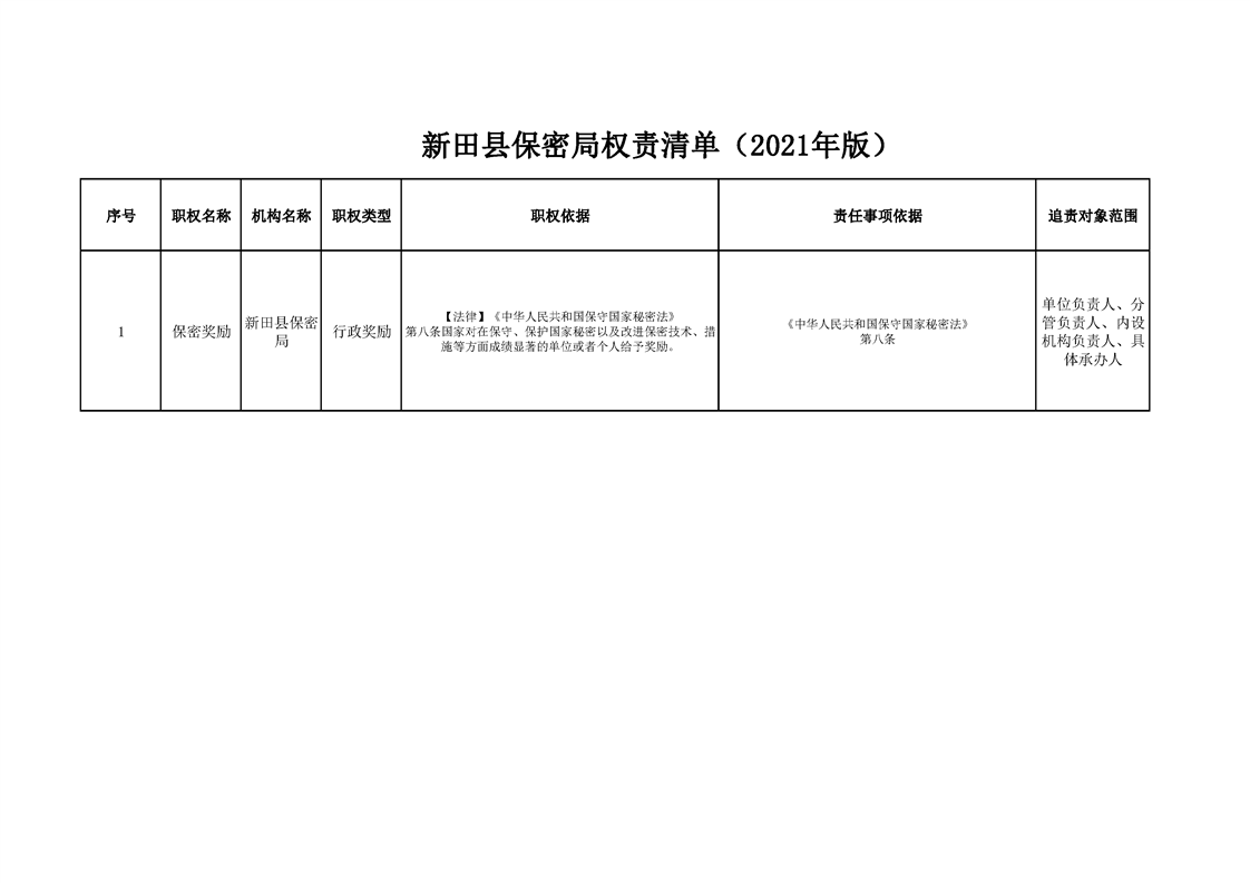 新田县保密局权责清单
