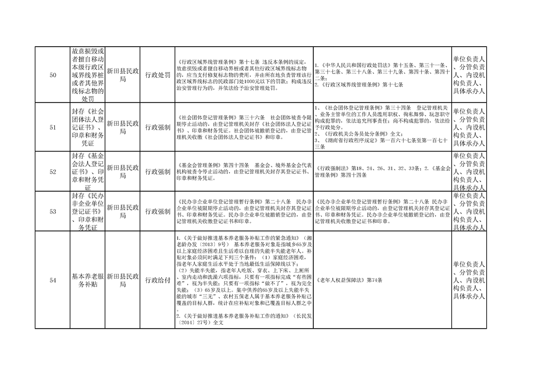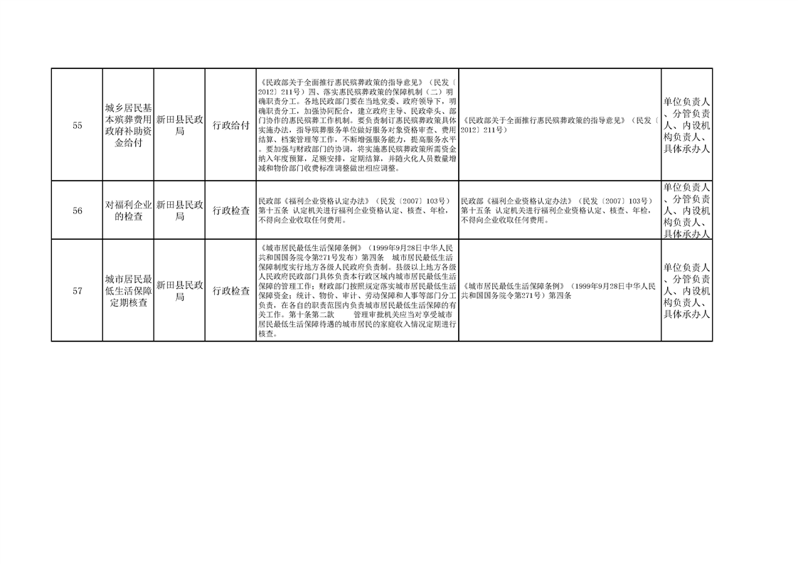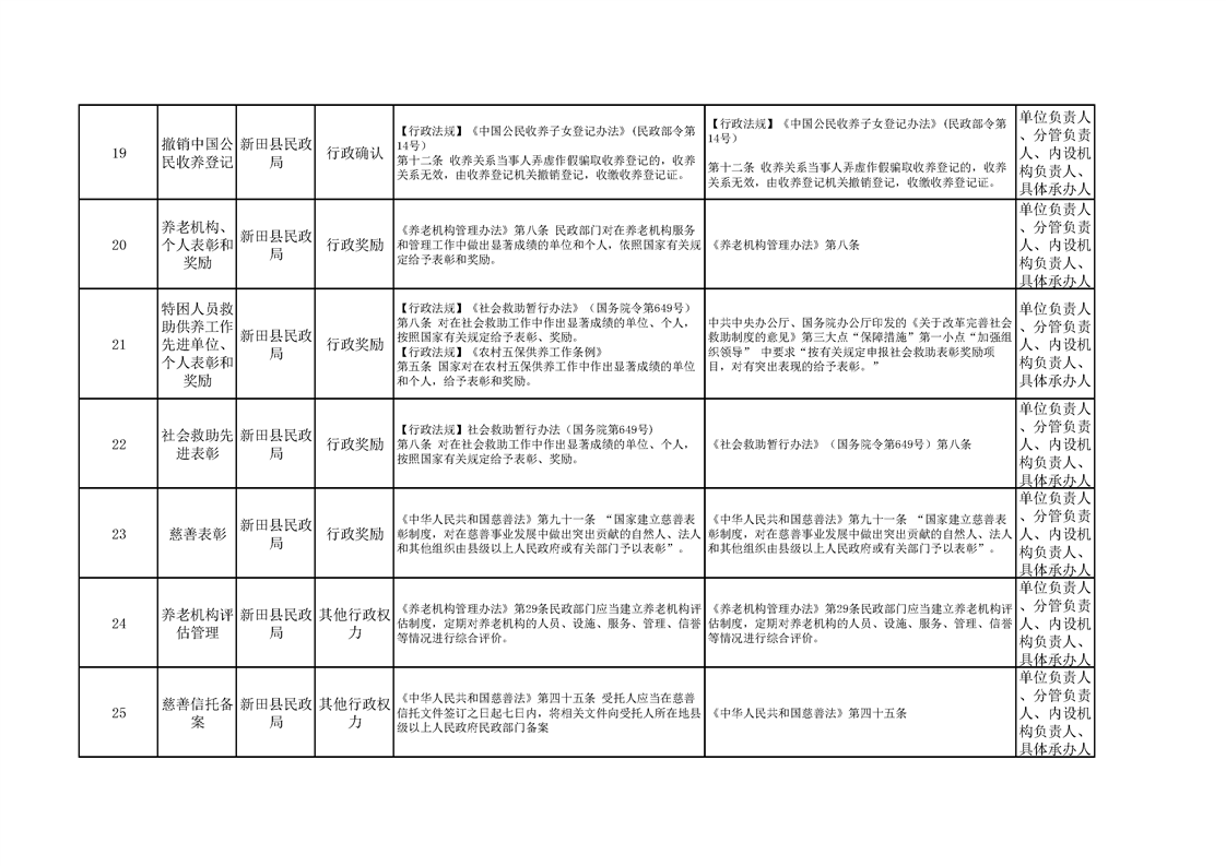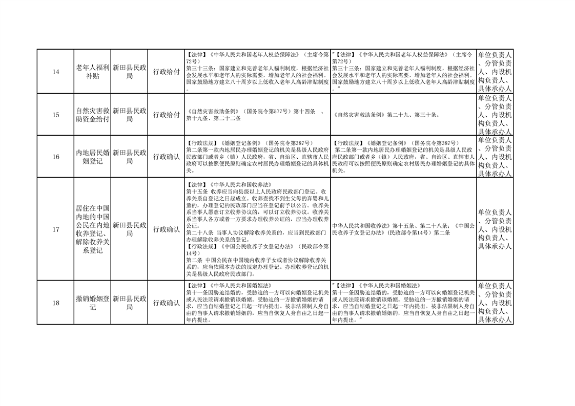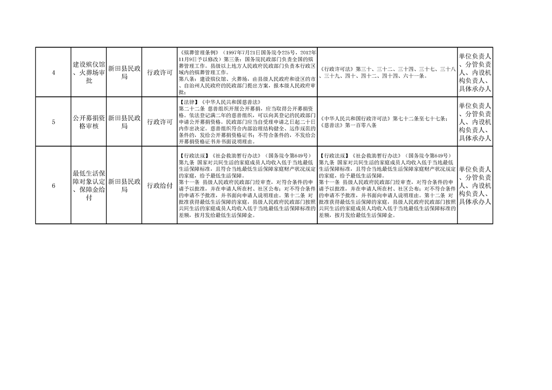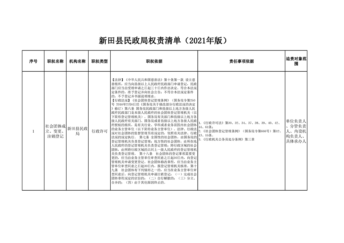 新田县民政局权责清单