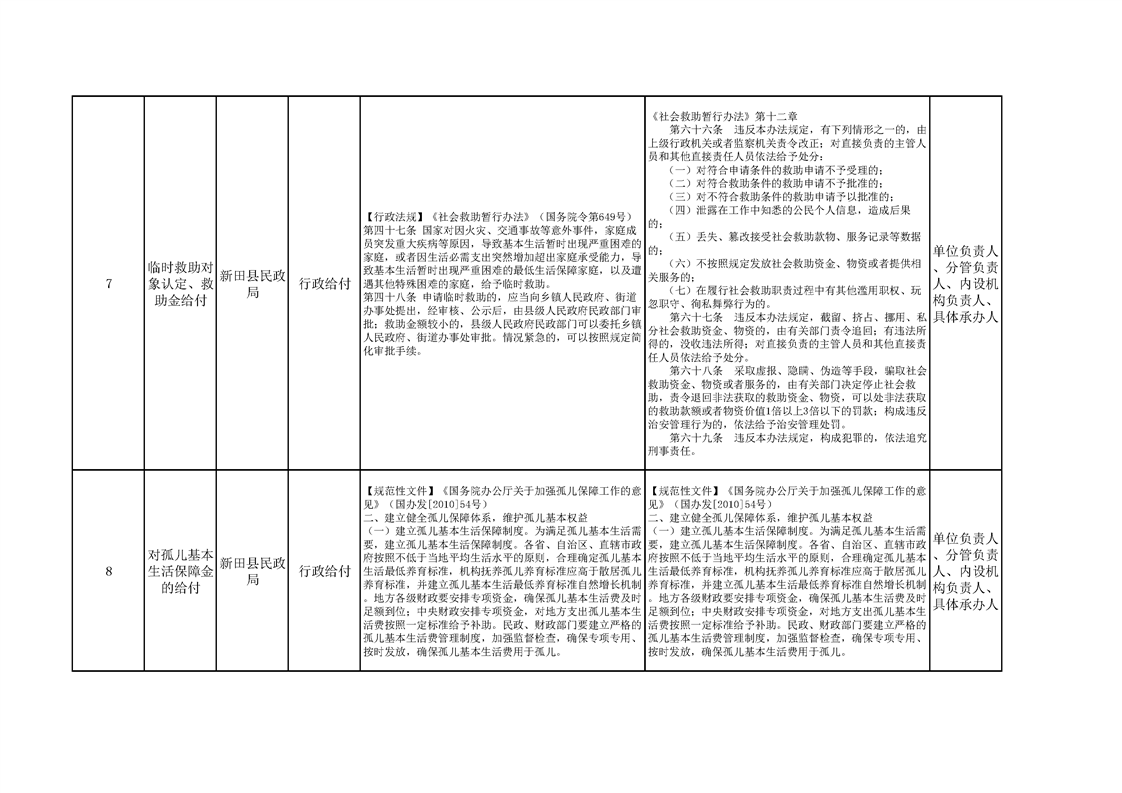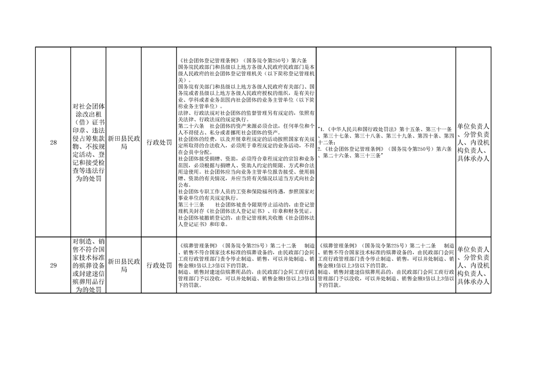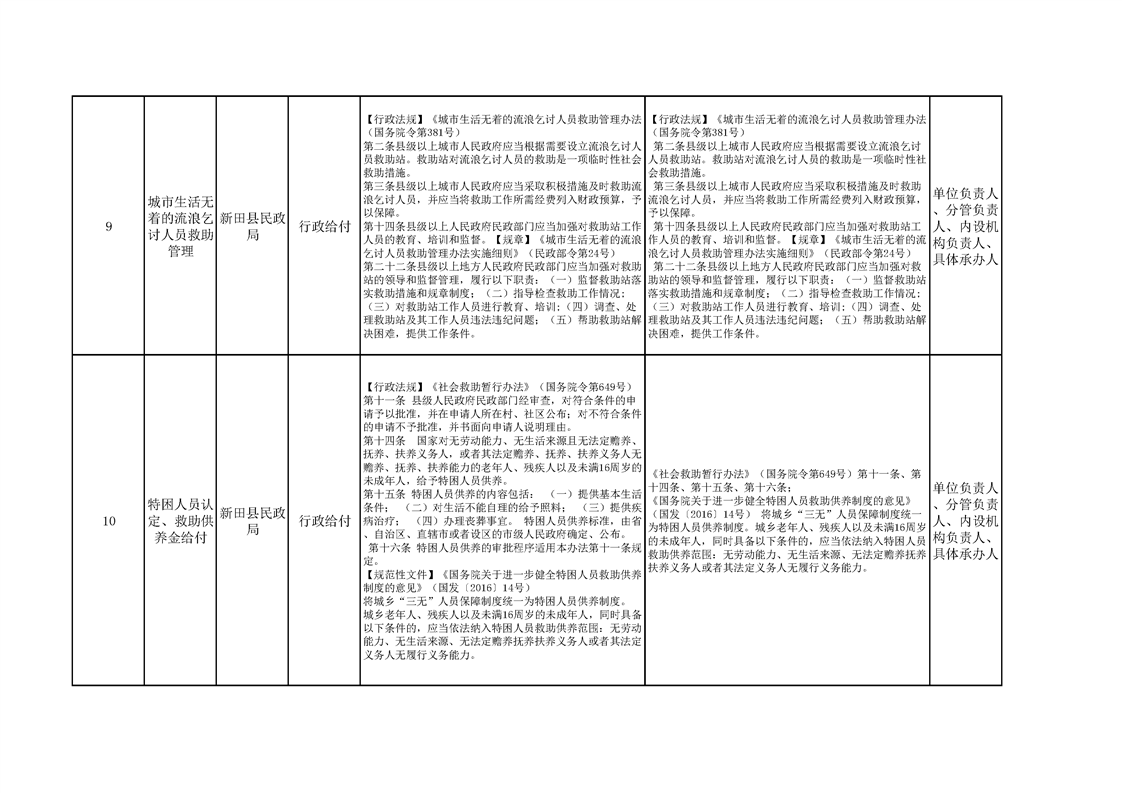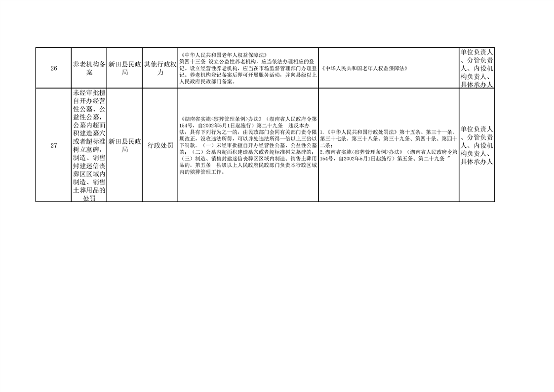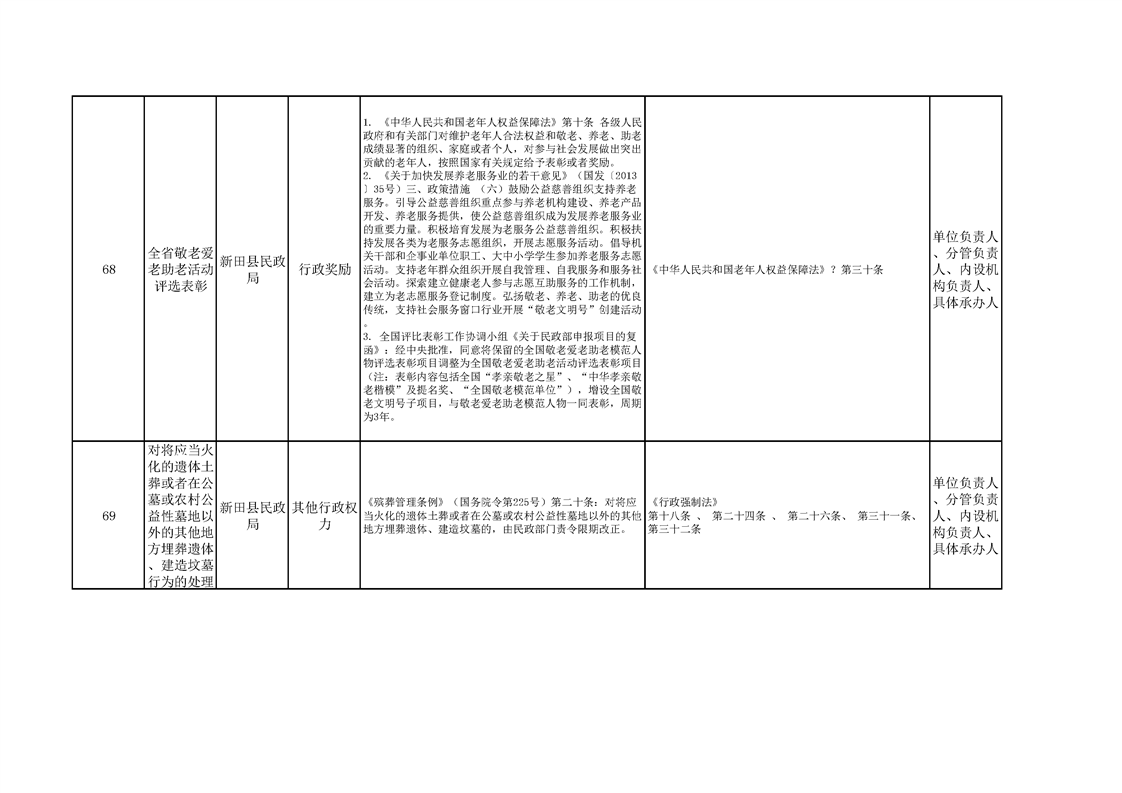 新田县民政局权责清单