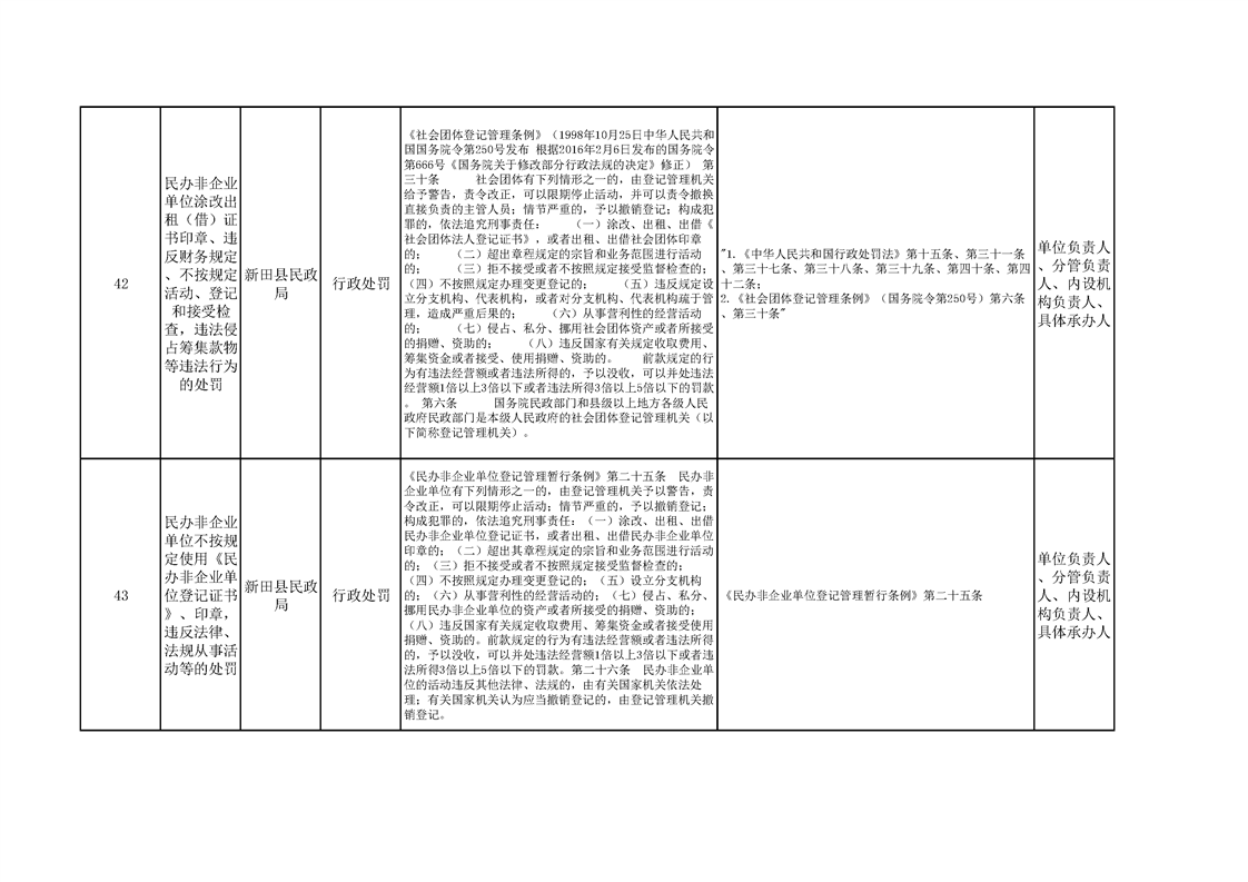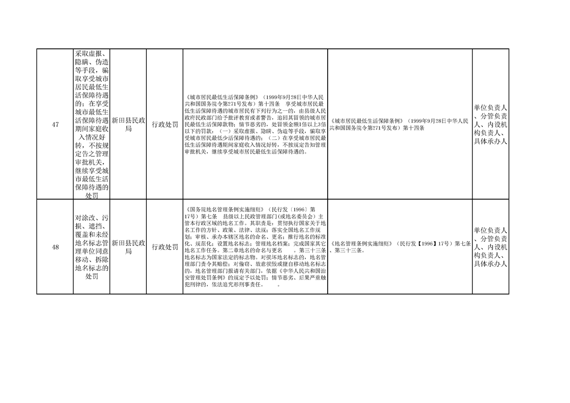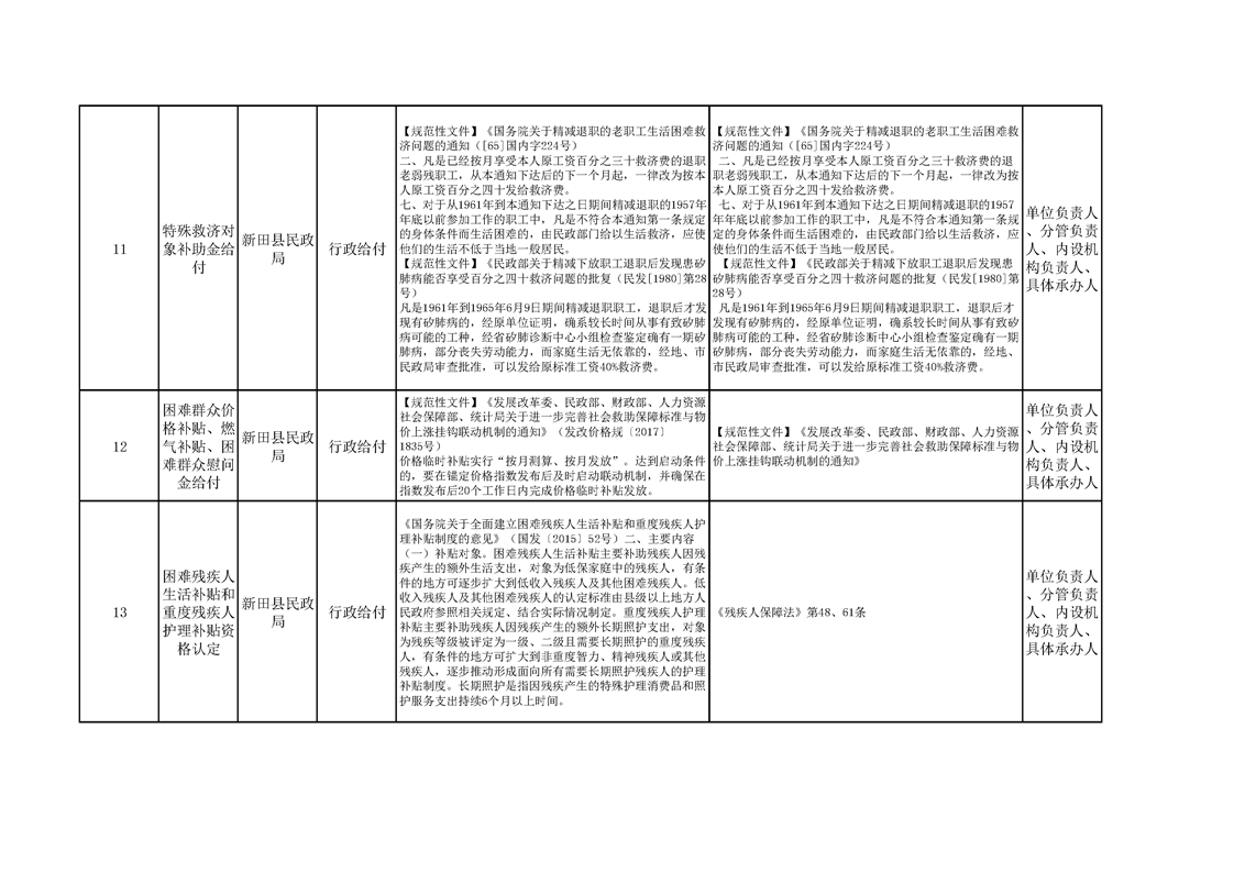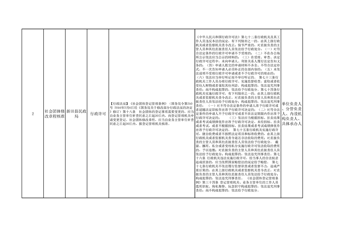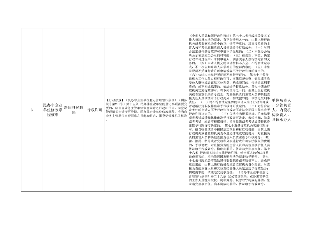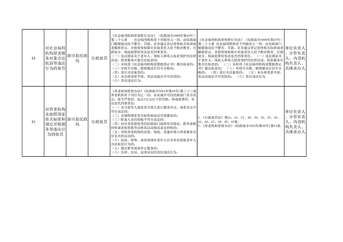 新田县民政局权责清单