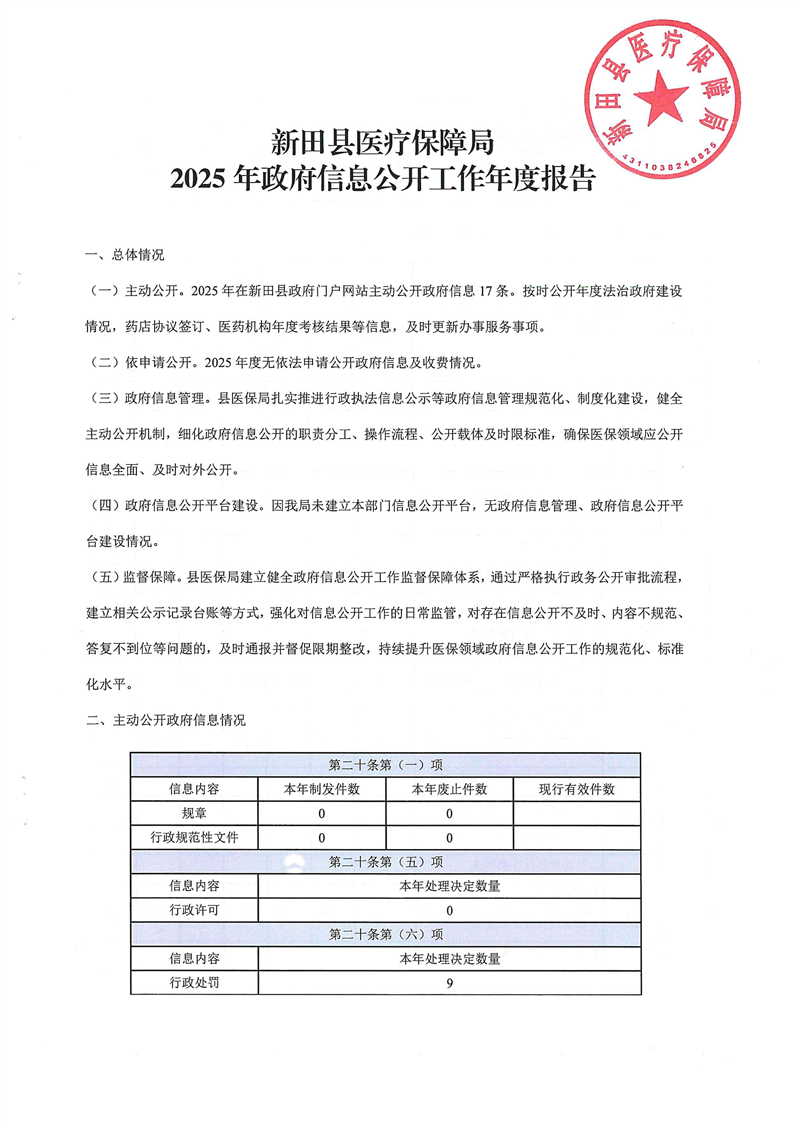 新田县医疗保障局2025年政府信息公开工作年度报告