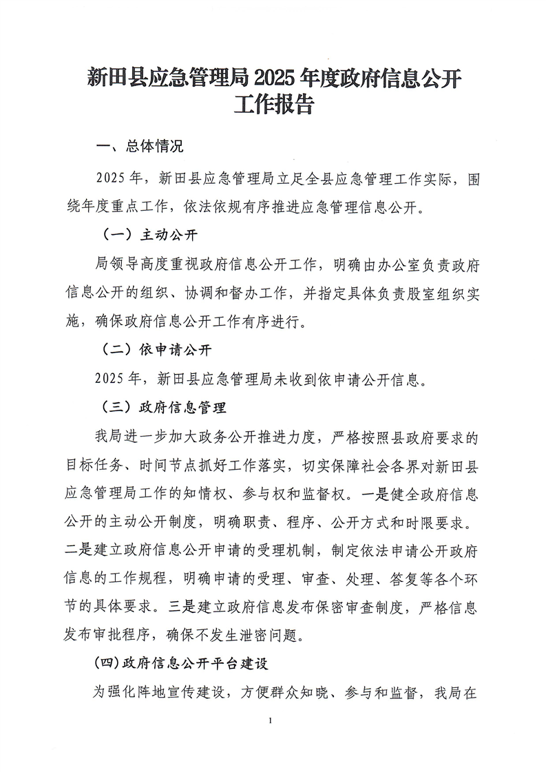 新田县应急管理局2025年度政府信息公开工作报告