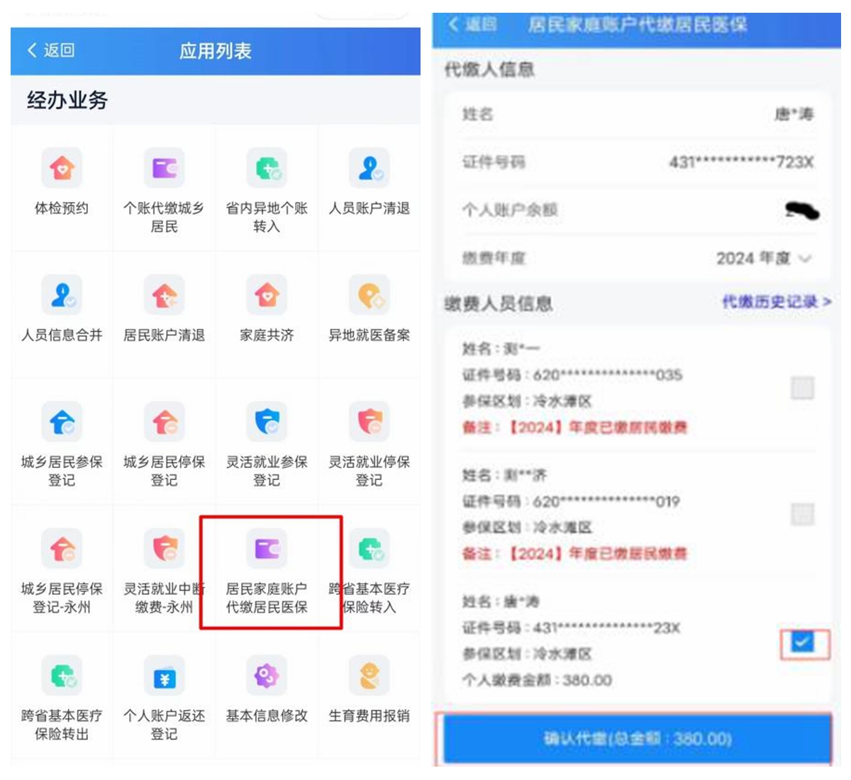 (1)授权人2024年医保是职工个账或居民家庭账户代缴的;