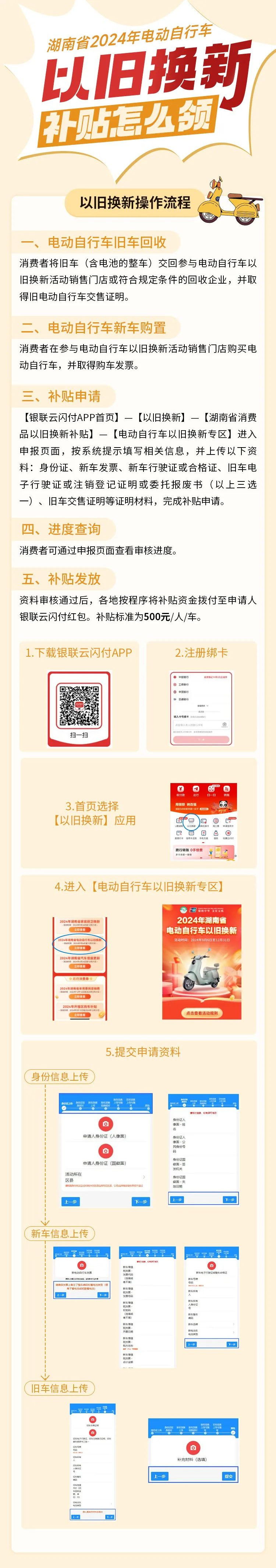一图解读,湖南省2024年电动自行车以旧换新补贴怎么领