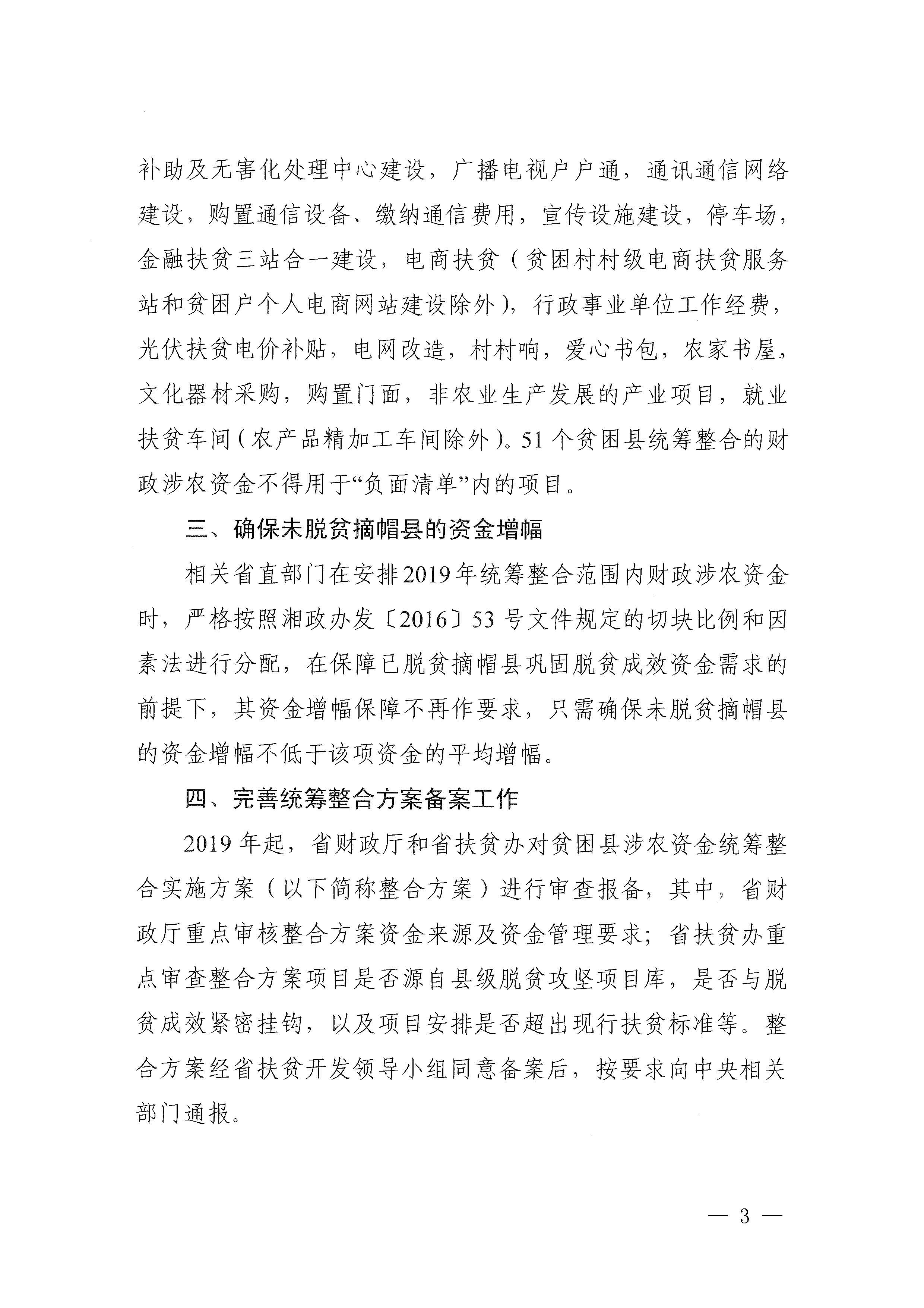 湖南省财政厅 扶贫办 关于转发财政部国务院扶贫办关于做好2019年贫困县涉农资金整合试点工作的通知 湘财农(2019)19号