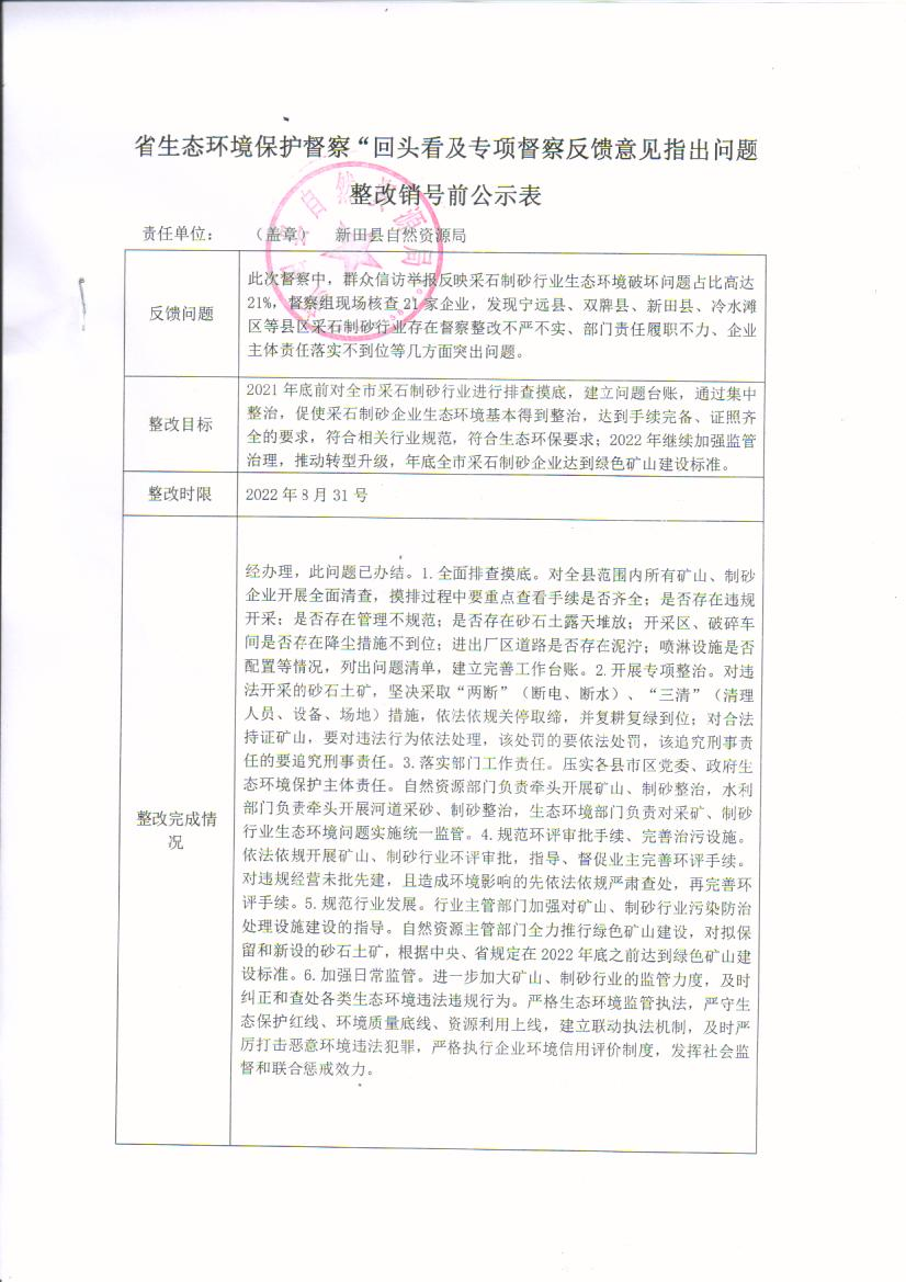 省生态环境保护督察“回头看”及专项督察反馈意见指出问题整改销号前公示