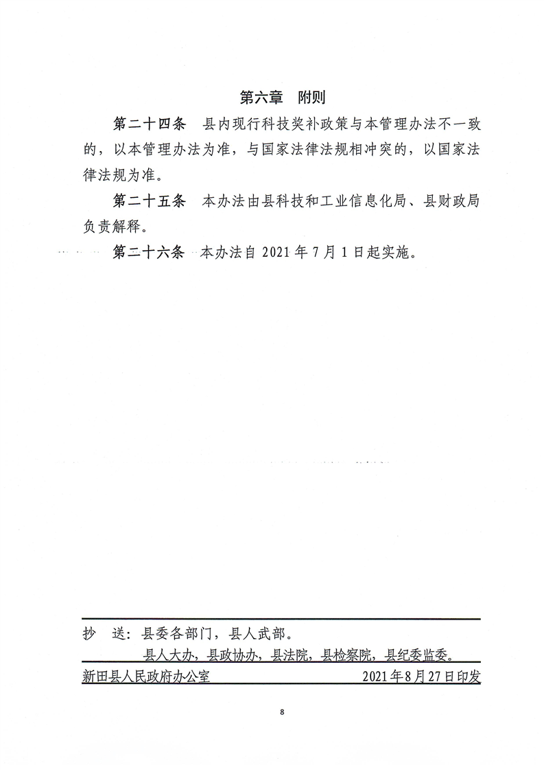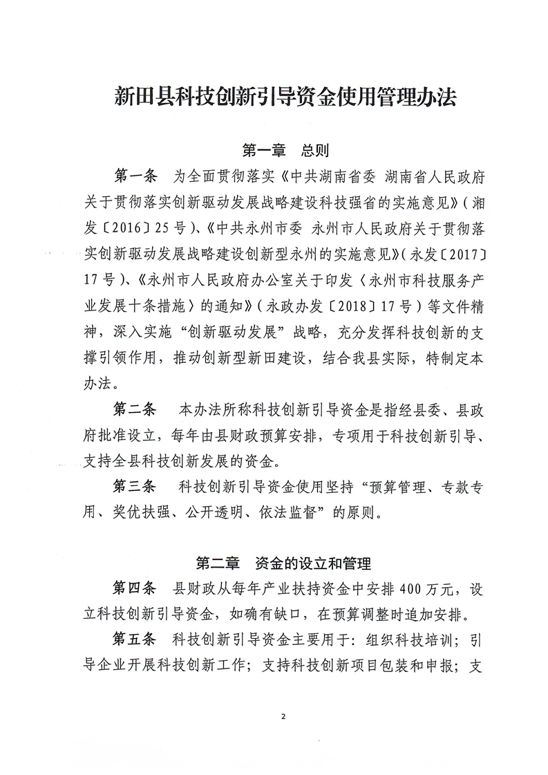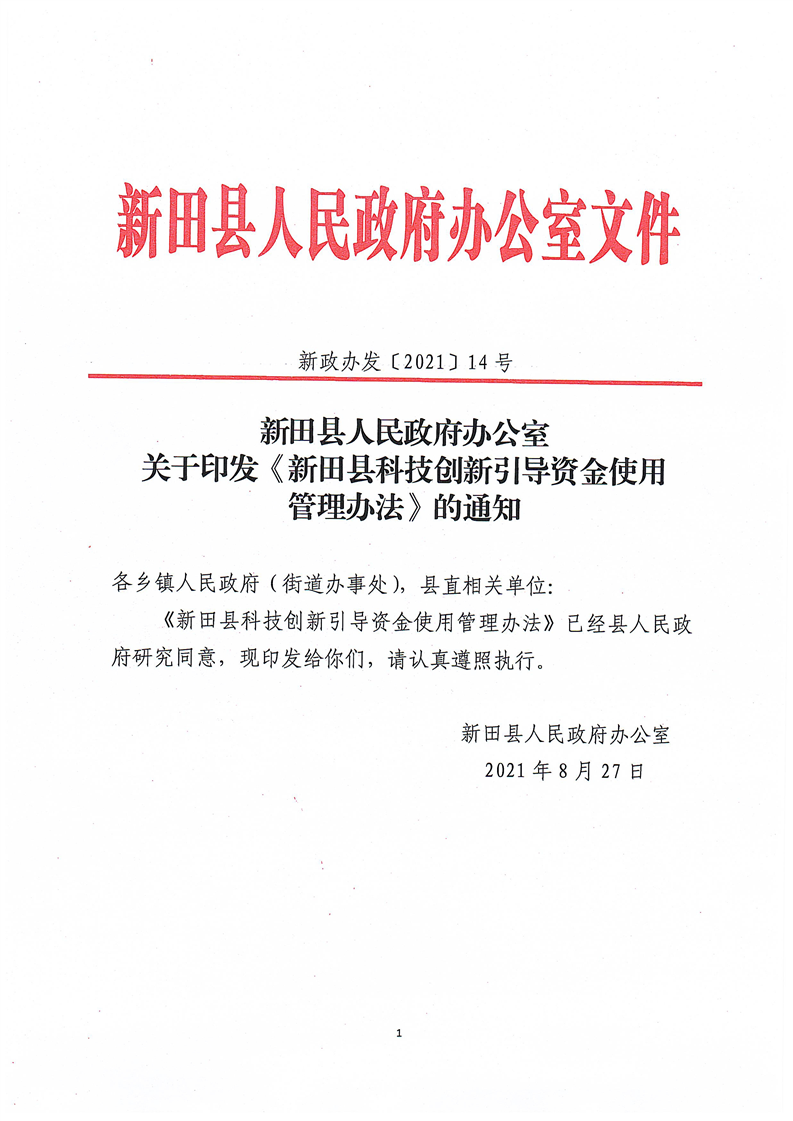 关于印发《新田县科技创新引导资金使用管理办法》的通知
