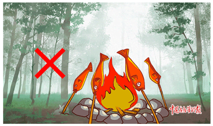 2021年1月,5人在四川省凉山州一国有林区内生火吃烤鸡,被护林员发现当场制止,最终,5人均被拘留十日并处以罚款五百元 。