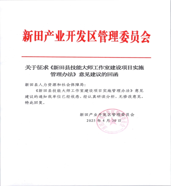 4月22日,我单位分别向县财政局,县科技商务工业信息化局、新田产业开发区、县司法局发函征求意见建议(回函附后)。县科技商务工业信息化局、新田产业开发区、县司法局反馈无意见,财政局提出修改意见如下: