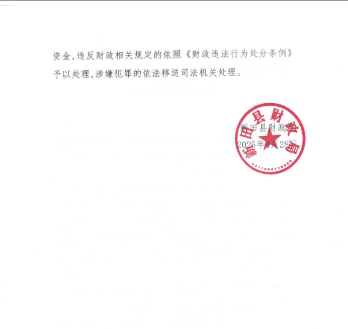 二、对于第四章项目产出与评估第十二条:如发现相关,责任人员擅自挪用县财政补助资金和地方专项补助资金,违反财政相关规定的依照《财政违法行为处罚处分条例》予以处理,涉嫌犯罪的依法移送司法机关处理。