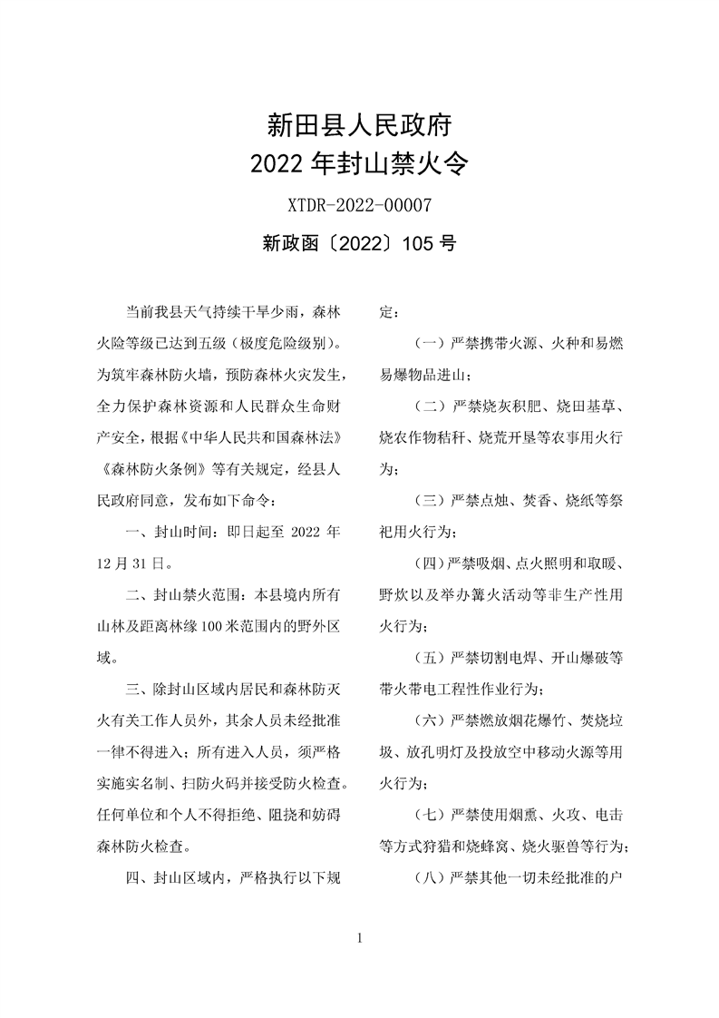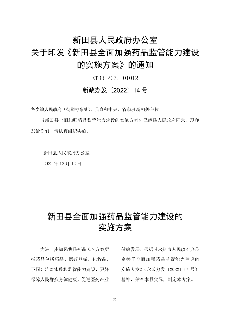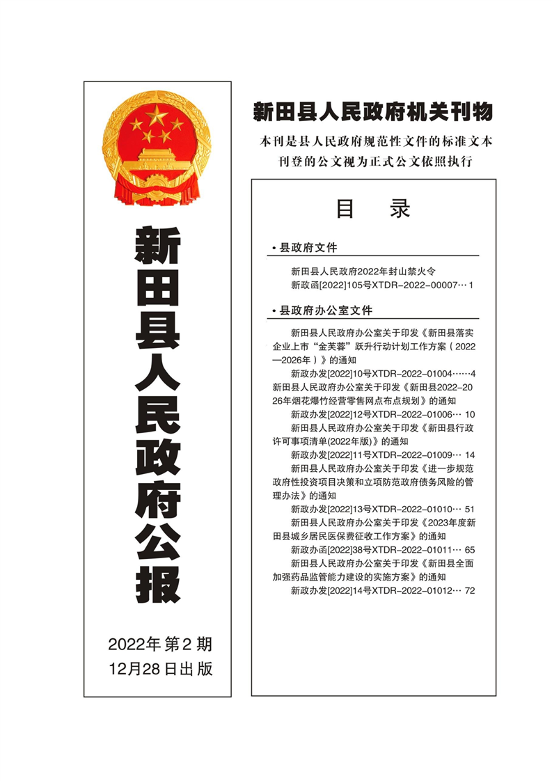 发文机关: 新田县人民政府 发文日期: 2022-12-30