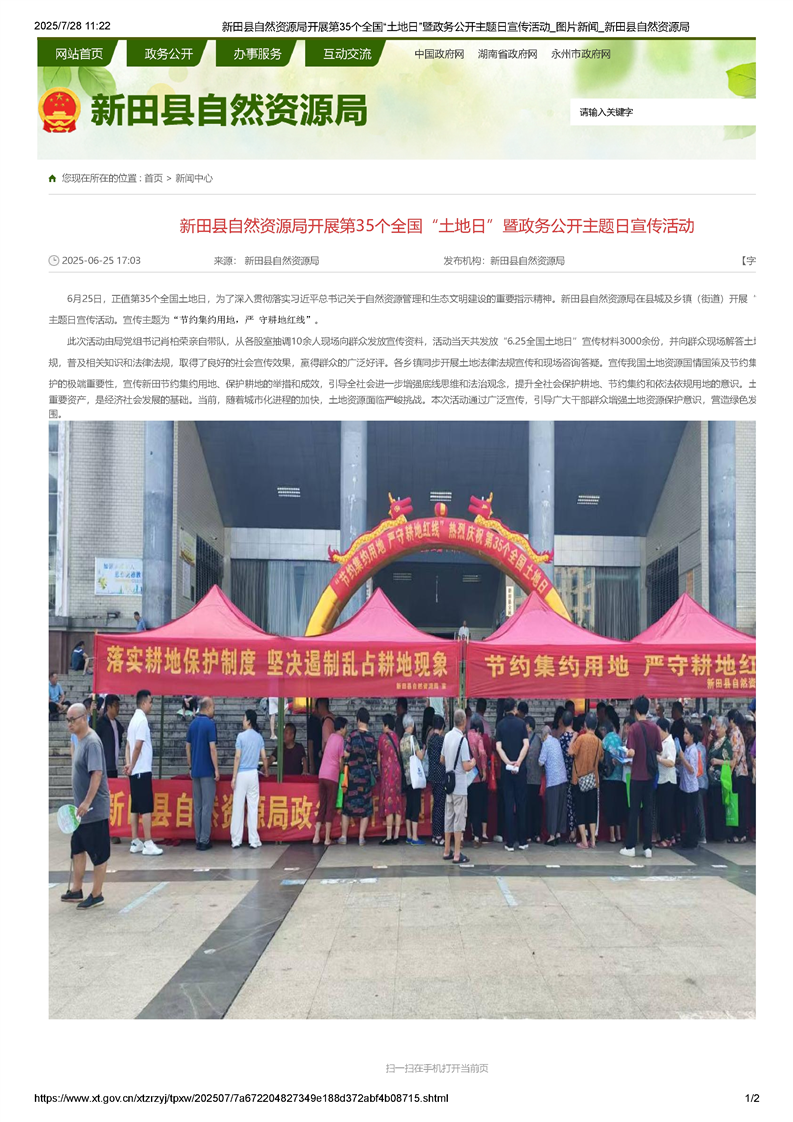 新田县自然资源局开展第35个全国“土地日”暨政务公开主题日宣传活动