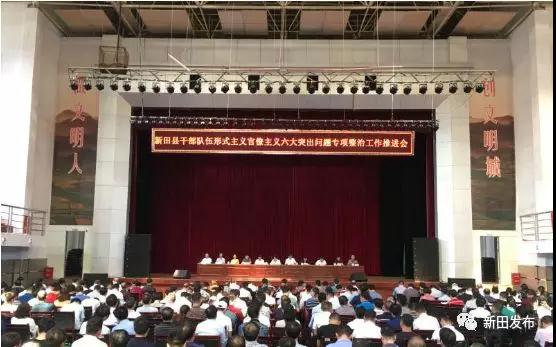记者近日从新田县干部队伍形式主义官僚主义突出问题领导小组办公室获悉,2019年5月1日开始,新田县在全县集中开展遵守政治纪律政治规矩、基层减负、扶贫领域、营商环境、工程项目建设、服务群众等六个方面的形式主义官僚主义突出问题专项整治行动,集中半年时间,解决一批突出问题、查处一批典型案例、问责一批失职干部、建立一批有效制度、总结一批经验成果,进一步促进全市党员干部牢固树立"四个意识",坚决做到"两个维护",推动中央重大决策部署和省委、市委、县委工作要求落地落实。