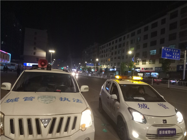 时至十点左右,忽见工业园住宅区一束烟花燃放在空中,立即驱车查看发现一名小女孩正要点燃炮竹,立即上前制止。“小朋友,新年好,燃放炮竹可不行,城管叔叔现在可要批评你,如果有下次是要写检讨的,快收拾收拾,回家看电视吧”“对不起,我马上清扫干净,不会再放了”小女孩细声回应,收拾,火速离开。这也算是我组除夕夜的“开门红”吧。接下来我们以工业园、塘家洞为重心,多遍巡查府前路、东溪街、银象路、怡华路,并未发现燃放现象。车载广播播放的禁燃通告声在空荡的马路上与偶尔飞驰过几辆归家的车辆声相比,格外响亮。十一点半左右,工业园附近天空接连出现烟花燃放和爆竹声,巡查发现燃放行为只限与禁燃区域外的城郊村,虚惊一场。工业园内相安无事,无爆竹、无烟花,静静的,只有我们执法人员和工业园管委会工作人员的欣慰声。十一点五十分到十二点四十分,陆续传来其他片区执法人员的禁燃捷报。“文体中心无情况”“中山广场无情况”“双碧广场无情况”“三里亭无情况”“民主村无情况”“田家岭无情况”“下车村无情况”……城区禁燃战役打的漂亮,成效显著!以我们一个多月的辛苦努力为新田县城送上一份祥和、安静、文明的除夕夜大礼,值得。凌晨二点,灯火熄灭,人们已入眠,迎接他们的是新年第一天的曙光。而在华灯下,与我们交班的同事,工作才刚刚开始。