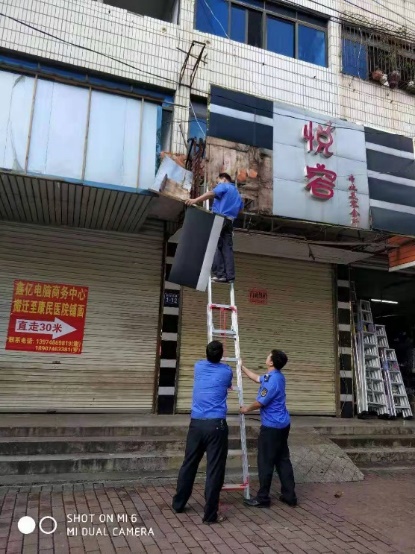 为了做好城市管理工作,维护好市容市貌,珍惜来之不易的全国卫生城市和全国文明城市的荣誉。新田城管局一直秉承严抓严打常态化的工作态度,对城区占道经营活动做耐心劝导和依法收缴两手准备,维护城区市容整洁和街道秩序;对城区内的影响城市形象的牛皮癣进行了清理,对危及市民人身安全的破损广告牌进行了拆除。