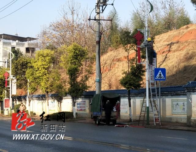 春节将至,1月9日,记者在新田县新华南路、府前路和秀峰街等城区主次干道看到,新田县城管局正组织路灯管理所工作人员有序安装LED红灯笼和中国结,为即将来临的春节营造出浓浓的节日气氛。