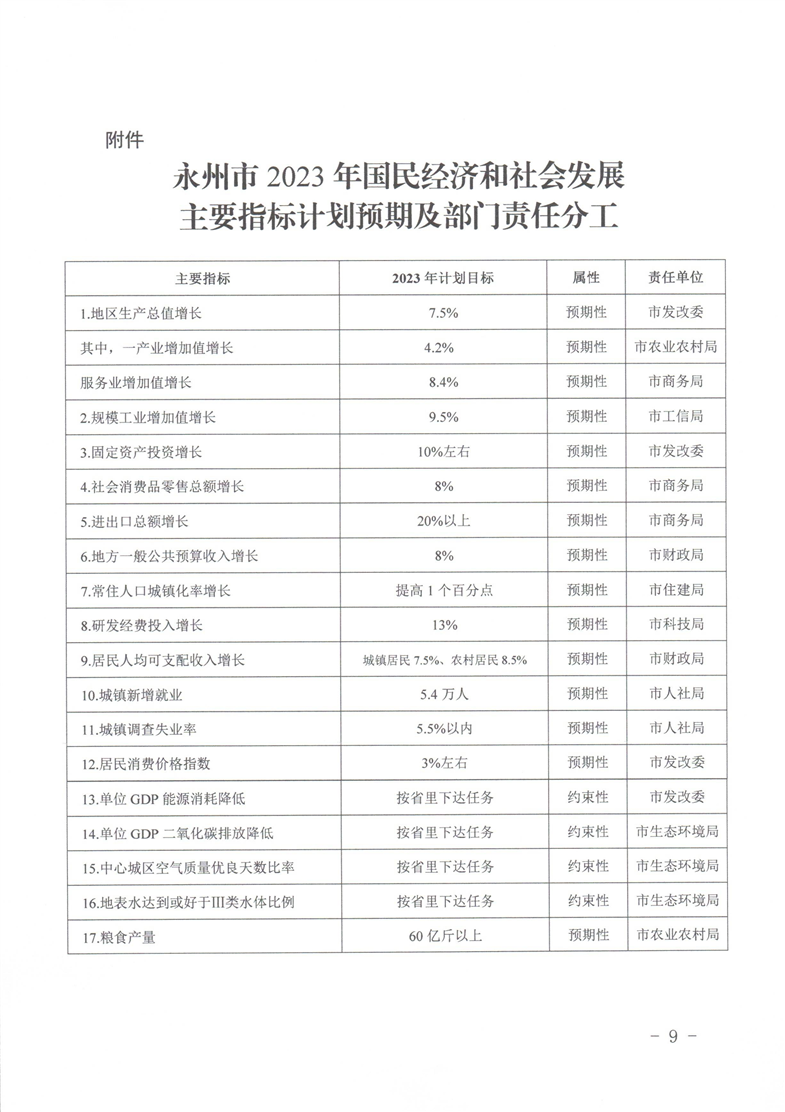 关于印发《永州市2023年国民经济和社会发展计划》的通知