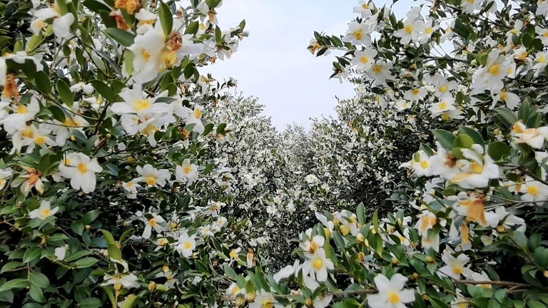 新田新闻网(新田融媒记者 蒋军君)秋末初冬时节,在新田县各乡镇的油茶基地里,漫山遍野的油茶花迎风尽情绽放、清香四溢,预示着来年又是一个丰收年。洁白的花瓣,金黄的花心,团团簇簇、层层叠叠,如雪如玉。漫山流动的素白,犹如铺上了一层厚厚的雪花,把连绵的油茶林装扮得格外漂亮,形成了一道独特的风景线。