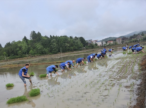 劳动期间,大家明确任务分工和安排,分工合作、相互配合,帮助种植基地开展春耕插秧工作。