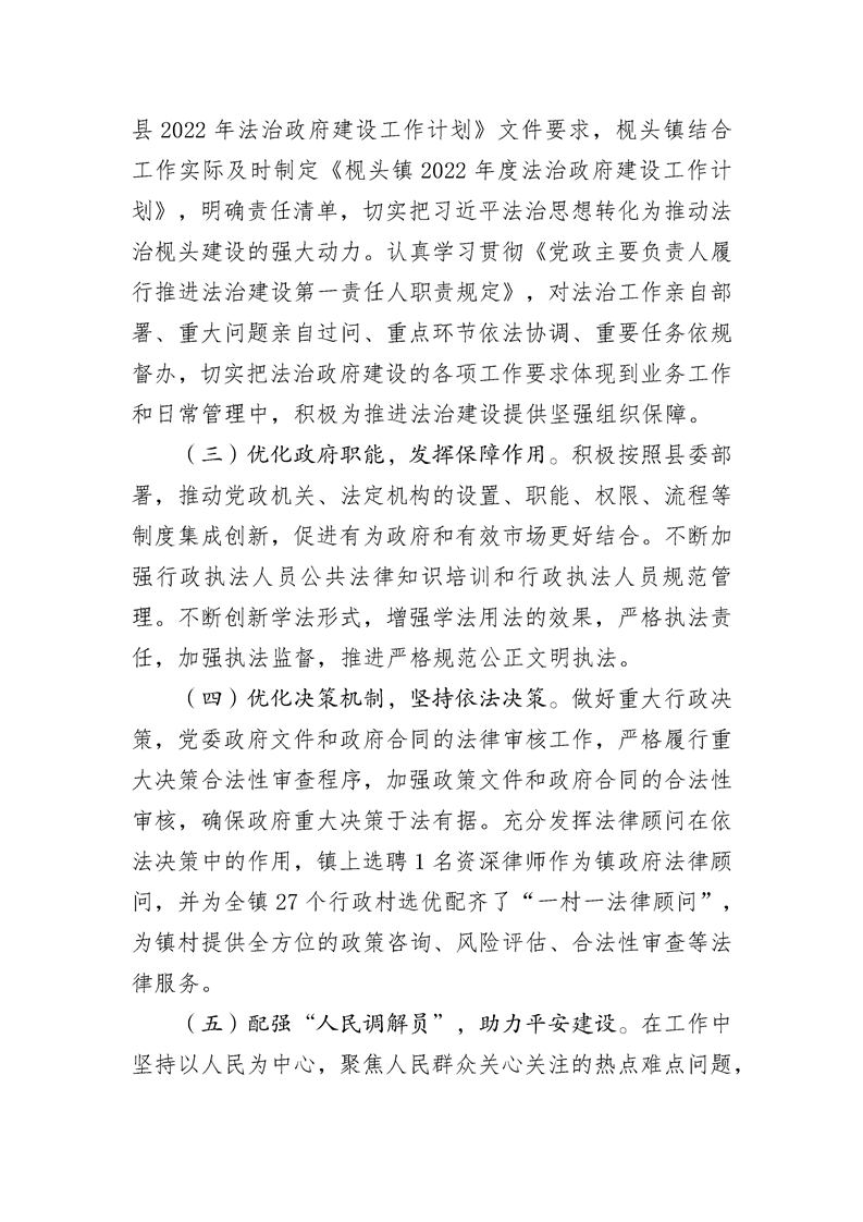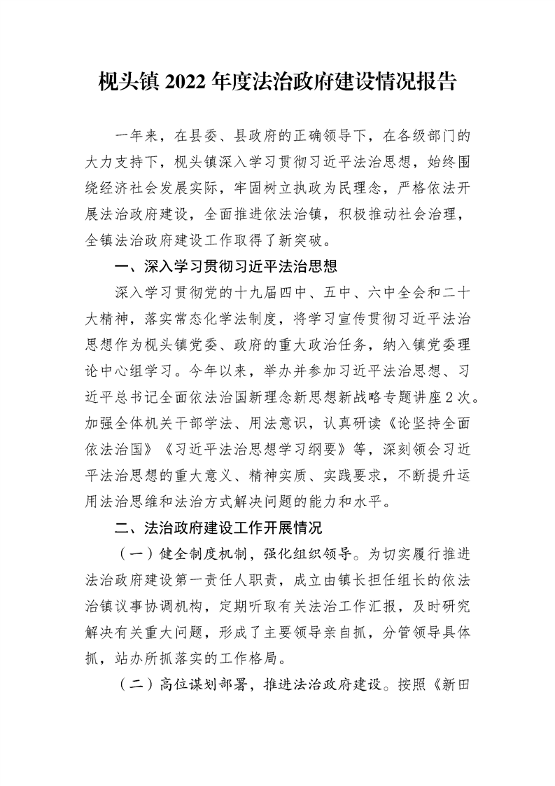 新田县枧头镇2022年度法治政府建设情况报告