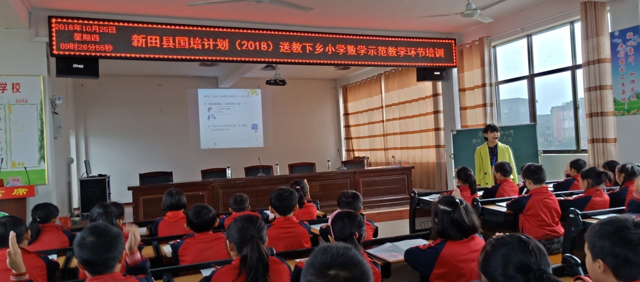 小数“国培计划(2018)”送教下乡培训项目线下示范课教学环节培训于10月25、30日在基地学校—龙泉四小积极开展。这次培训的主题是:“解决问题”应用题教学中如何渗透建模思想。培训目标是:充分发挥“国培计划”示范、引领作用,建立健全校本研修机制。通过团队成员示范课教学、座谈交流、代表发言的方式进行,以问题为导向,开展主题教学教研活动,着力解决乡村教师教育教学中的疑难问题,优化教育教学手段,提升教育教学质量。