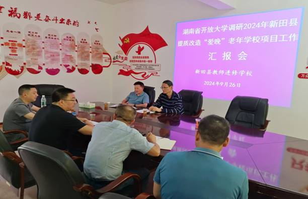 近日,湖南省开放大学党委副书记欧俊等专家组一行对新田县提质改造“爱晚”老年学校项目开展中期实地调度工作,永州市开放大学党委书记李长于,新田县人民政府副县长郭贤锋等陪同。