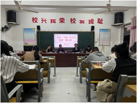 为深入学习宣传贯彻党的二十届三中全会精神,引导全校教职工把思想和行动统一到全会精神上来,以更大的决心投身教育教学改革,提升学校教学质量,近日,枧头学校在学校大会议室举行“学习贯彻党的二十届三中全会精神微宣讲报告会”。