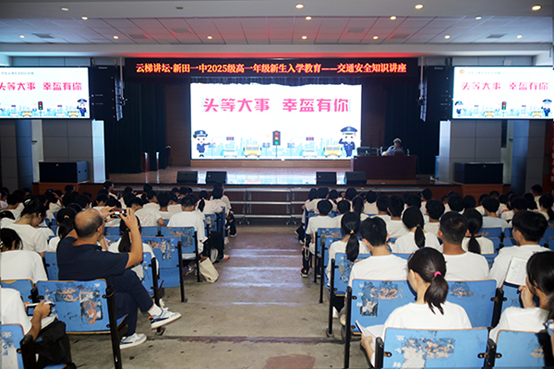 为筑牢校园交通安全防线,增强师生及家长的交通安全意识,近日,新田一中邀请到新田县公安局交警大队宣讲员廖文华,为高一新生上了一堂交通安全知识的讲座。