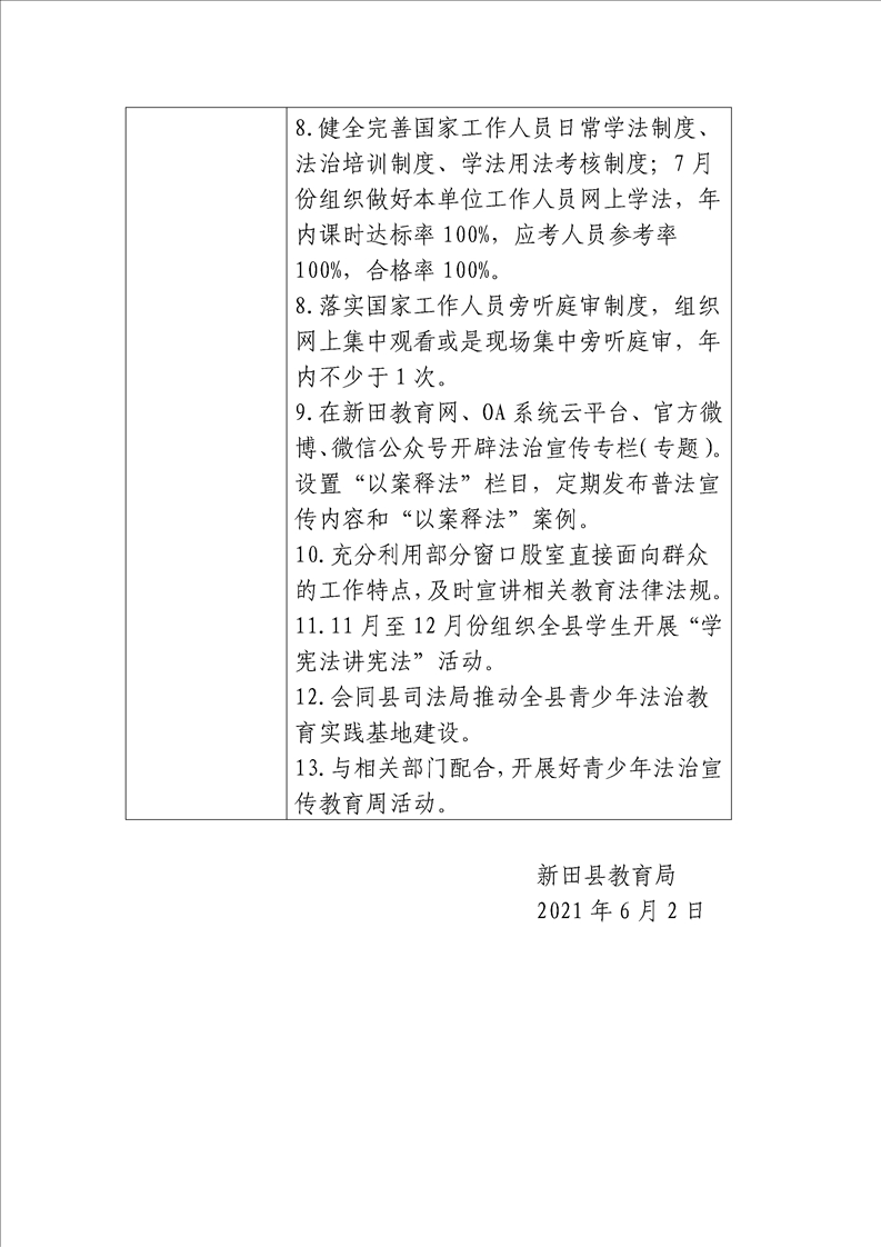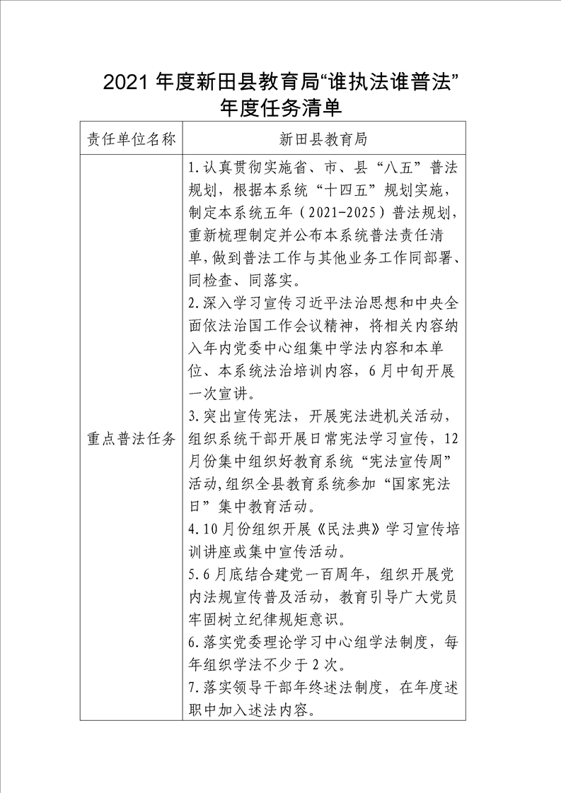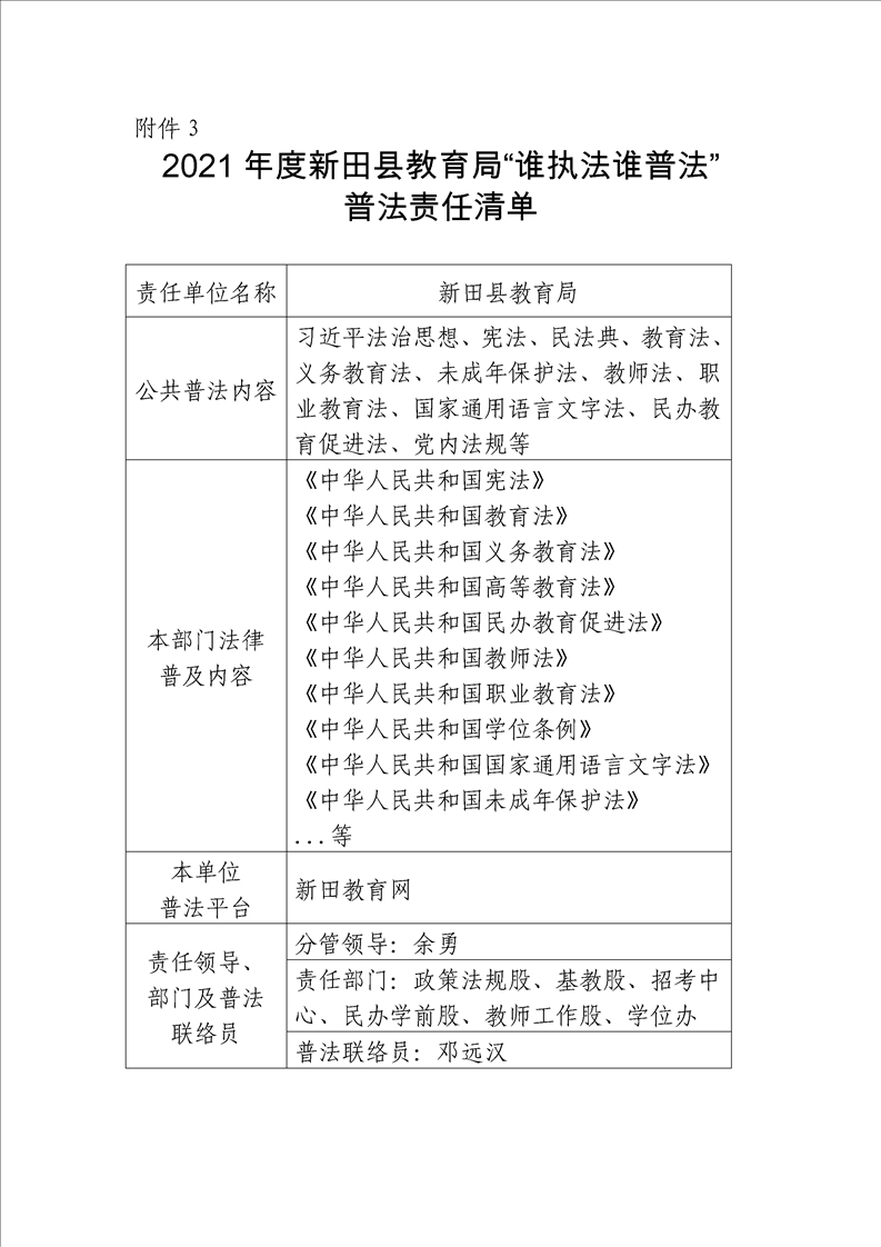 2021年度新田县教育局“谁执法谁普法”普法责任清单
