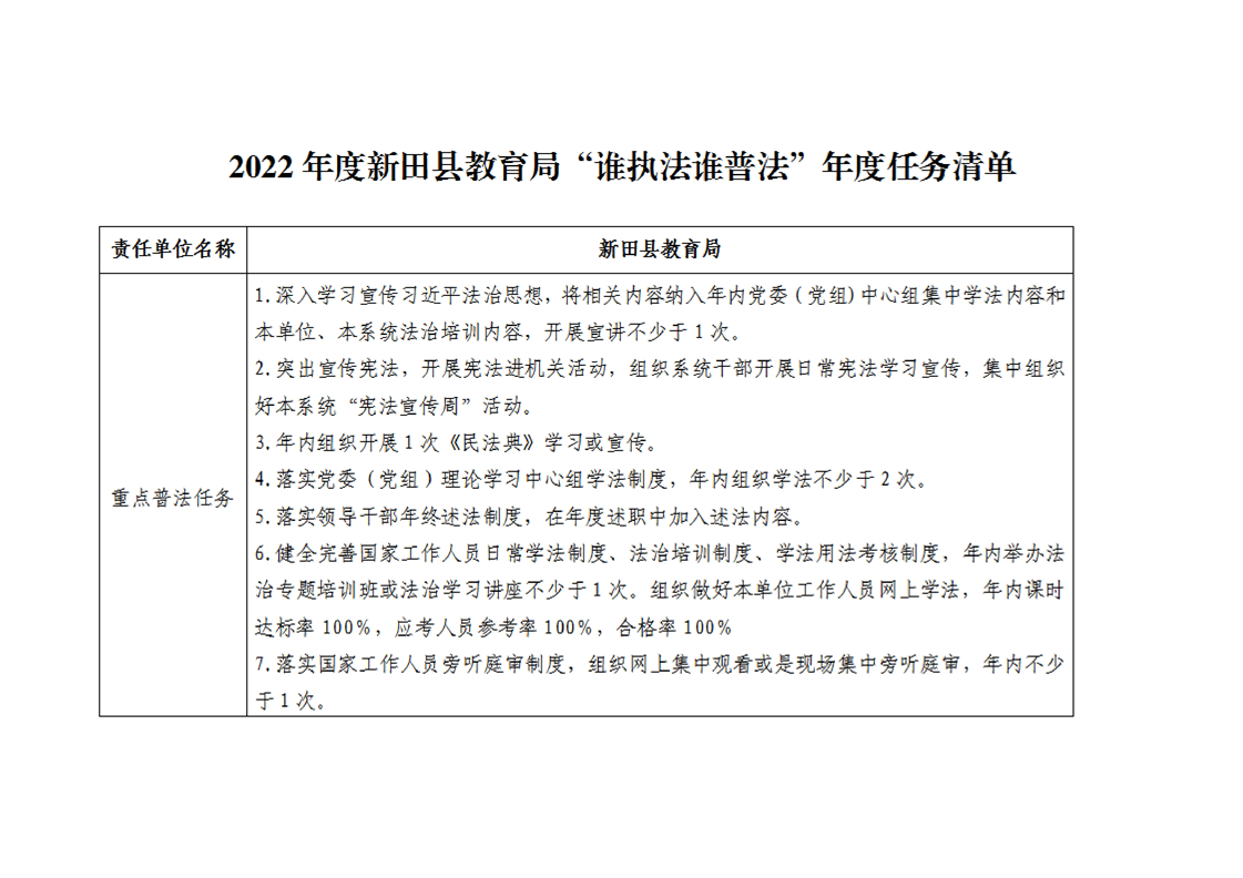 2022年度新田县教育局“谁执法谁普法”年度任务清单