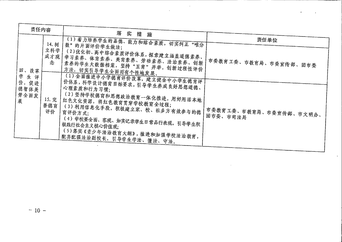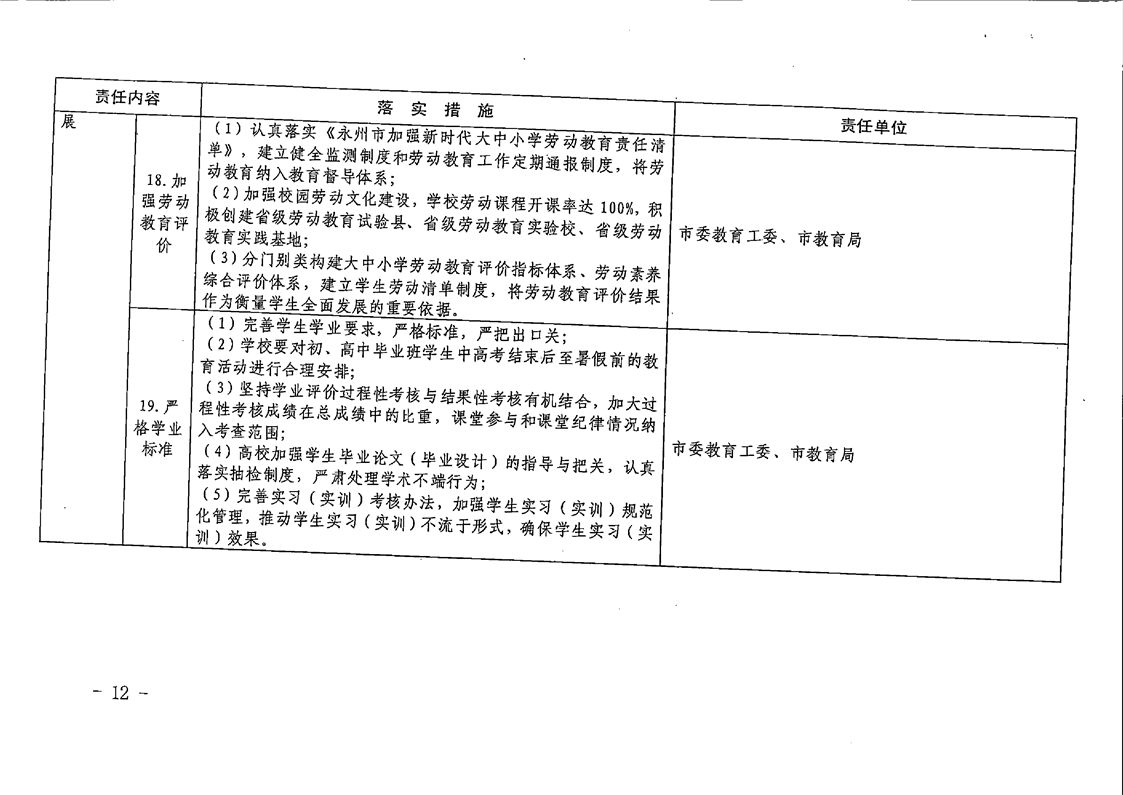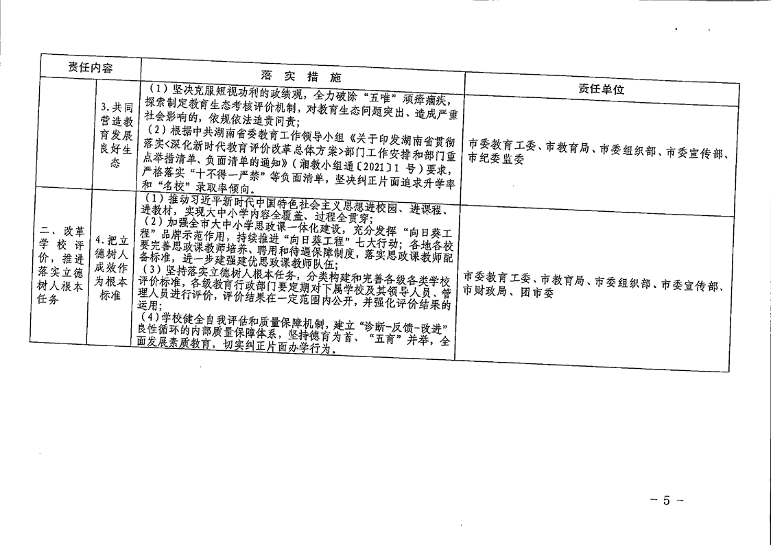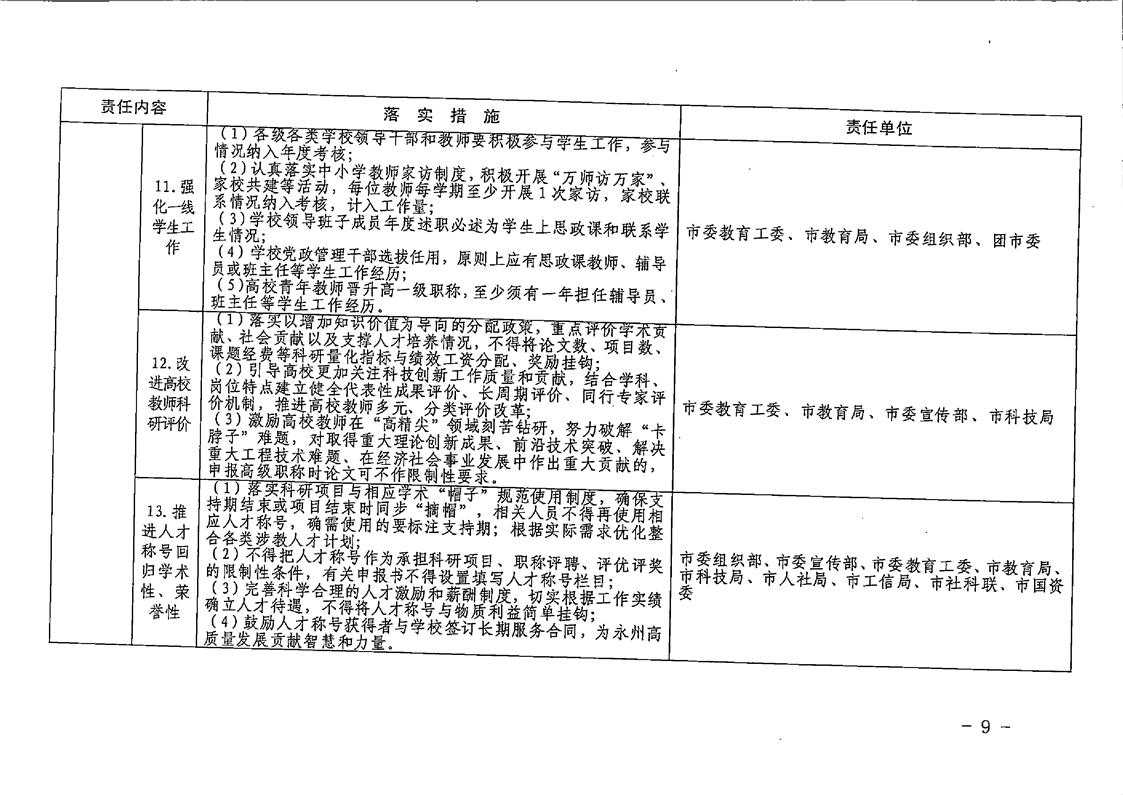 中共永州市委办公室关于印发《永州市落实湖南省深化新时代教育评价改革实施方案责任清单》的通知