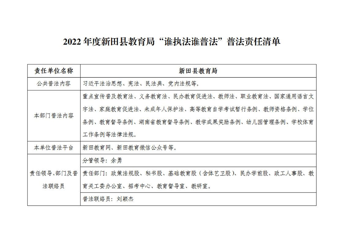 2022年度新田县教育局“谁执法谁普法”普法责任清单